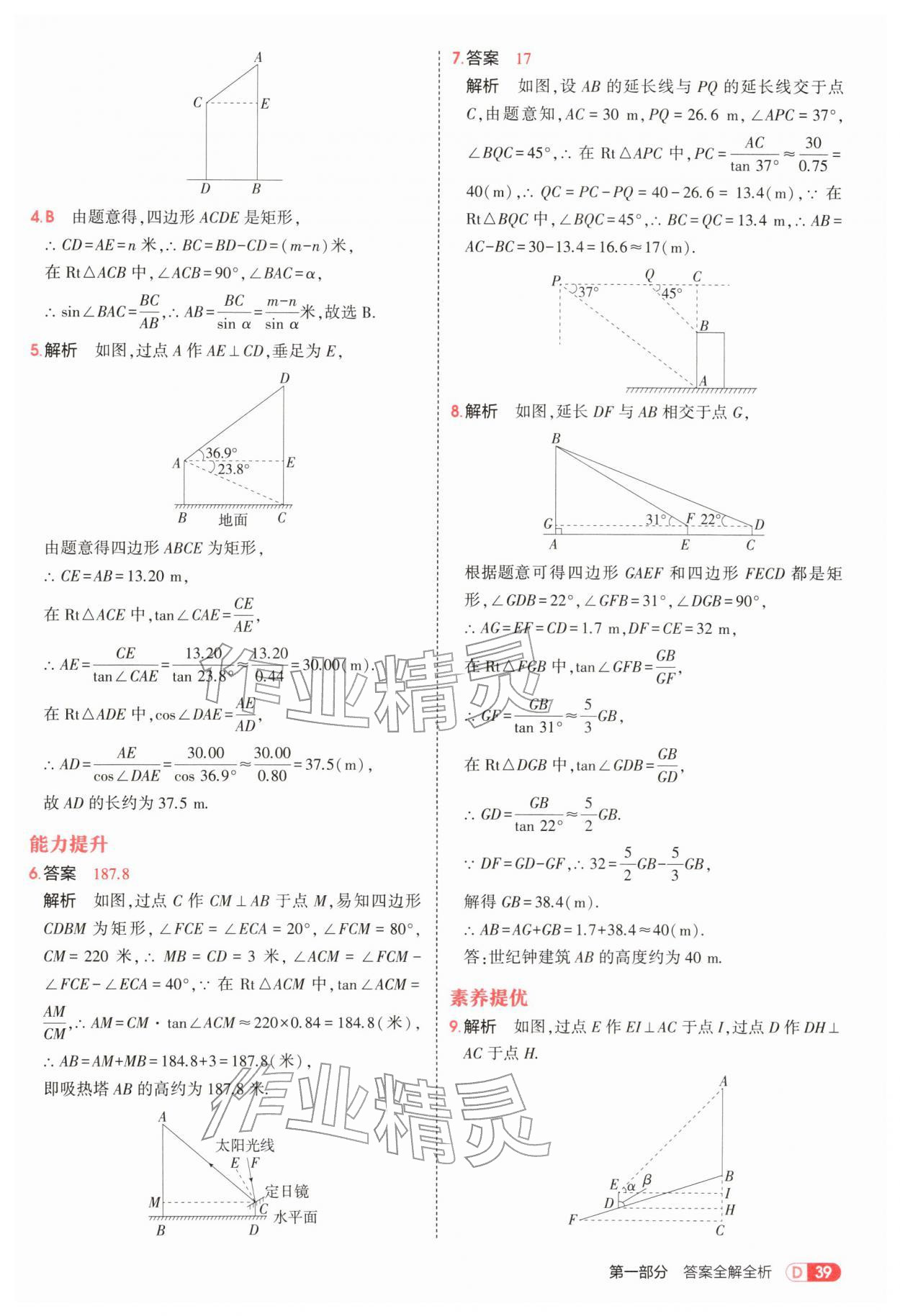 2026年5年中考3年模拟九年级数学下册人教版参考答案第39页