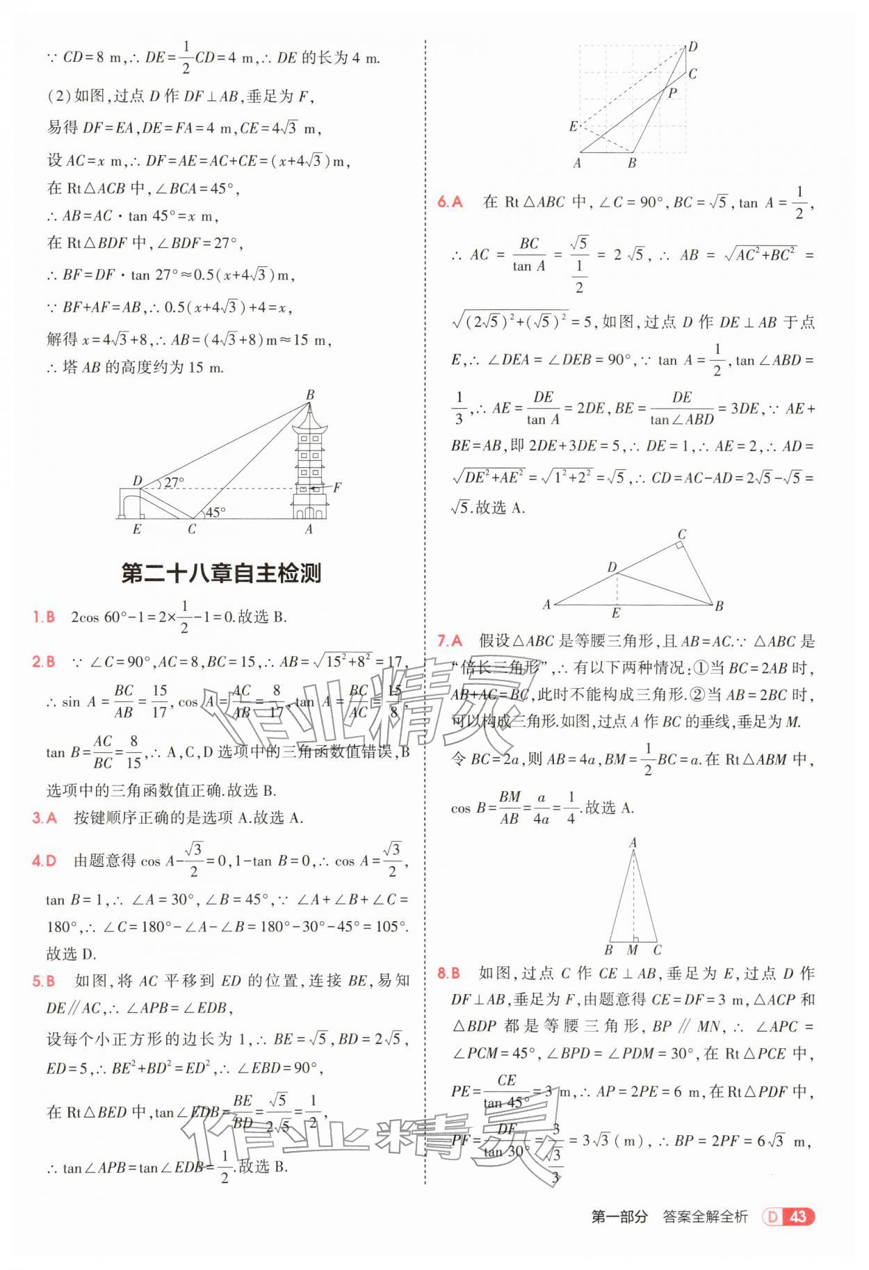2026年5年中考3年模拟九年级数学下册人教版参考答案第43页