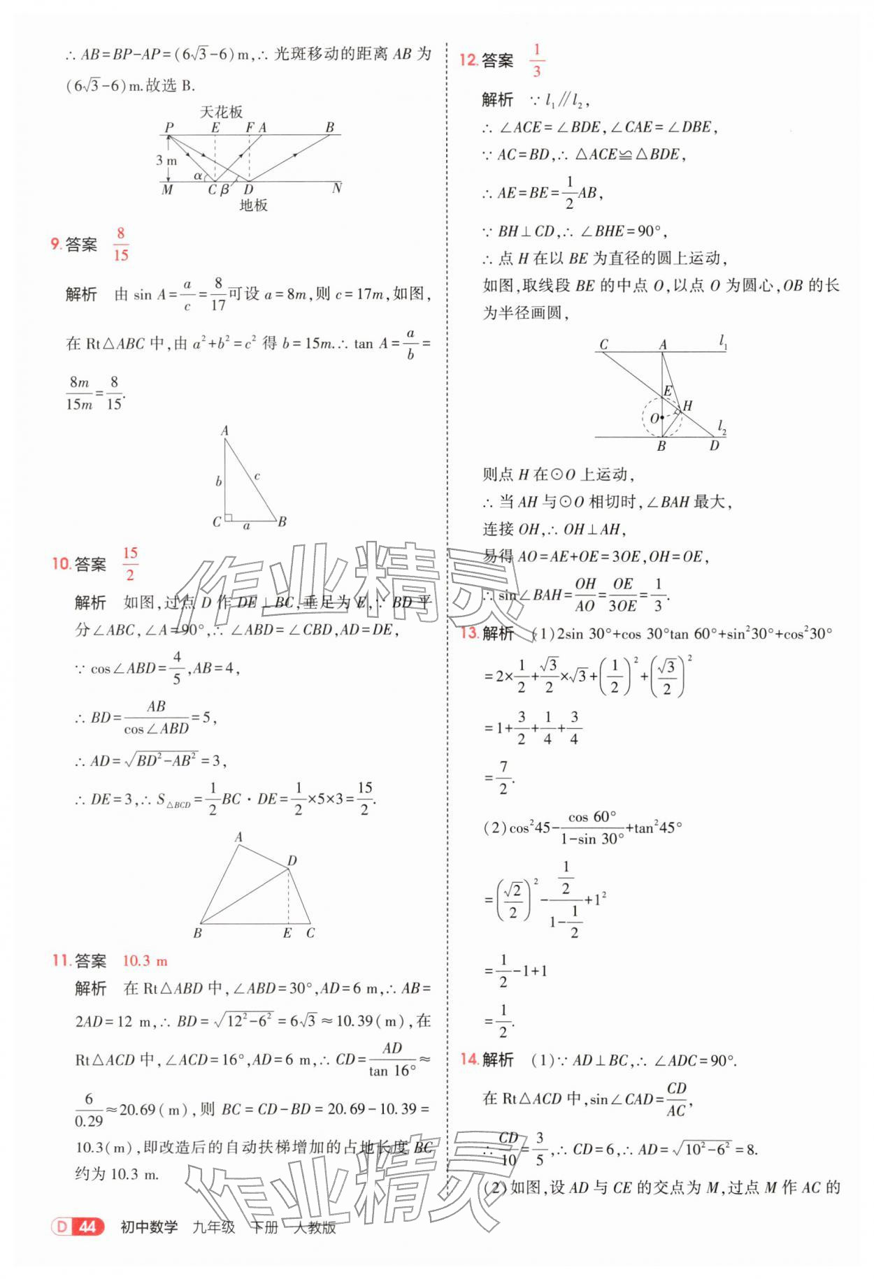 2026年5年中考3年模拟九年级数学下册人教版参考答案第44页