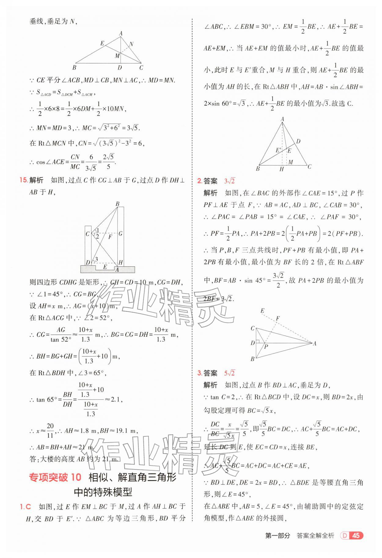 2026年5年中考3年模拟九年级数学下册人教版参考答案第45页