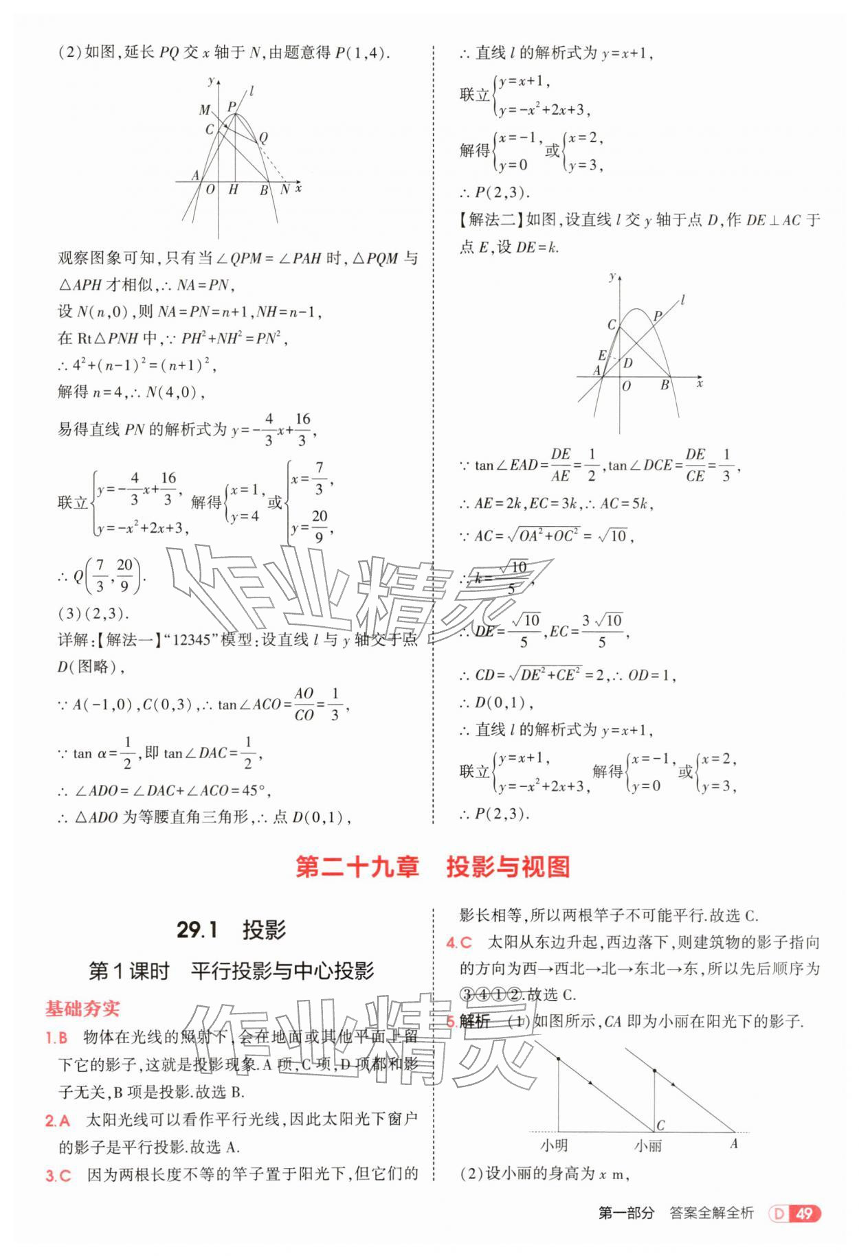 2026年5年中考3年模拟九年级数学下册人教版参考答案第49页