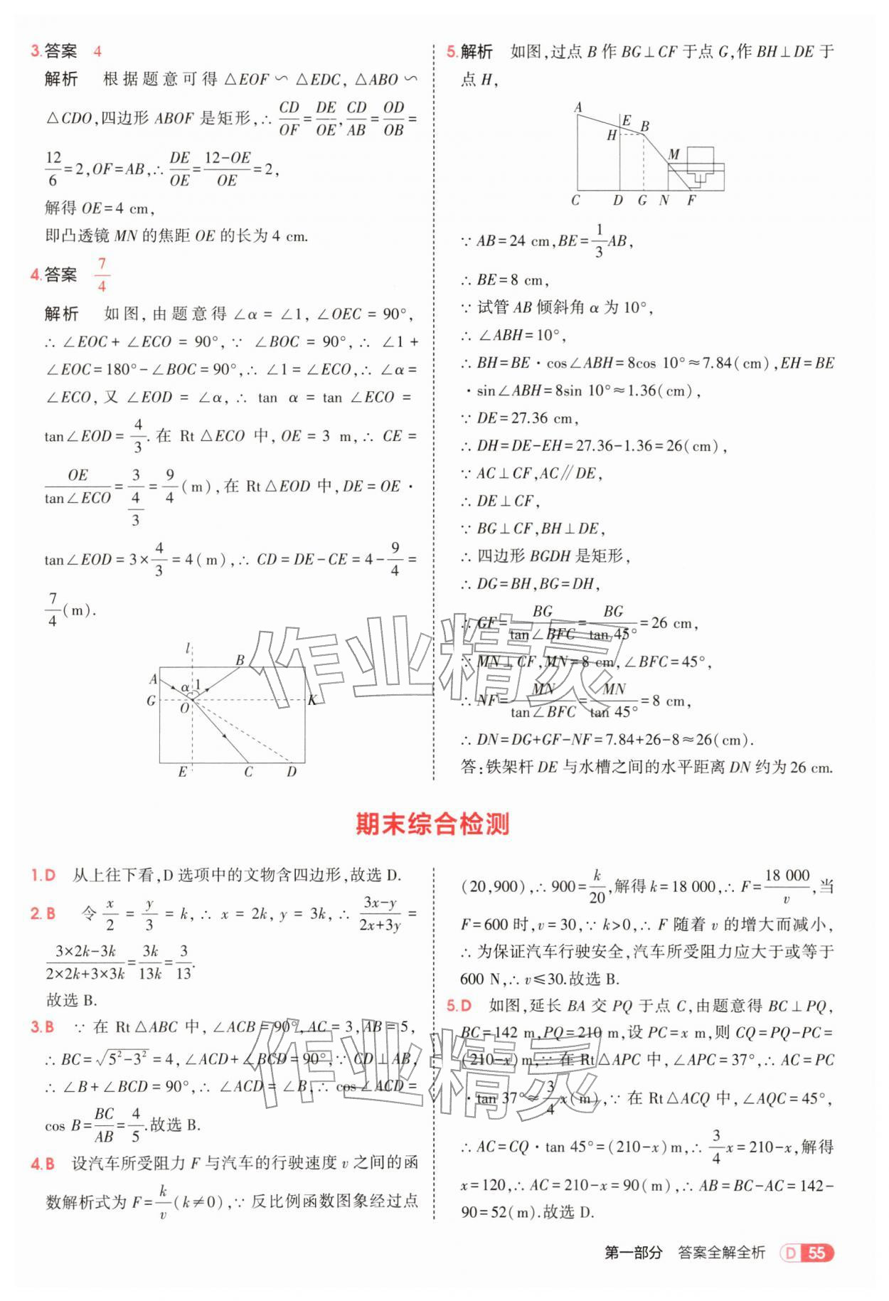 2026年5年中考3年模拟九年级数学下册人教版参考答案第55页