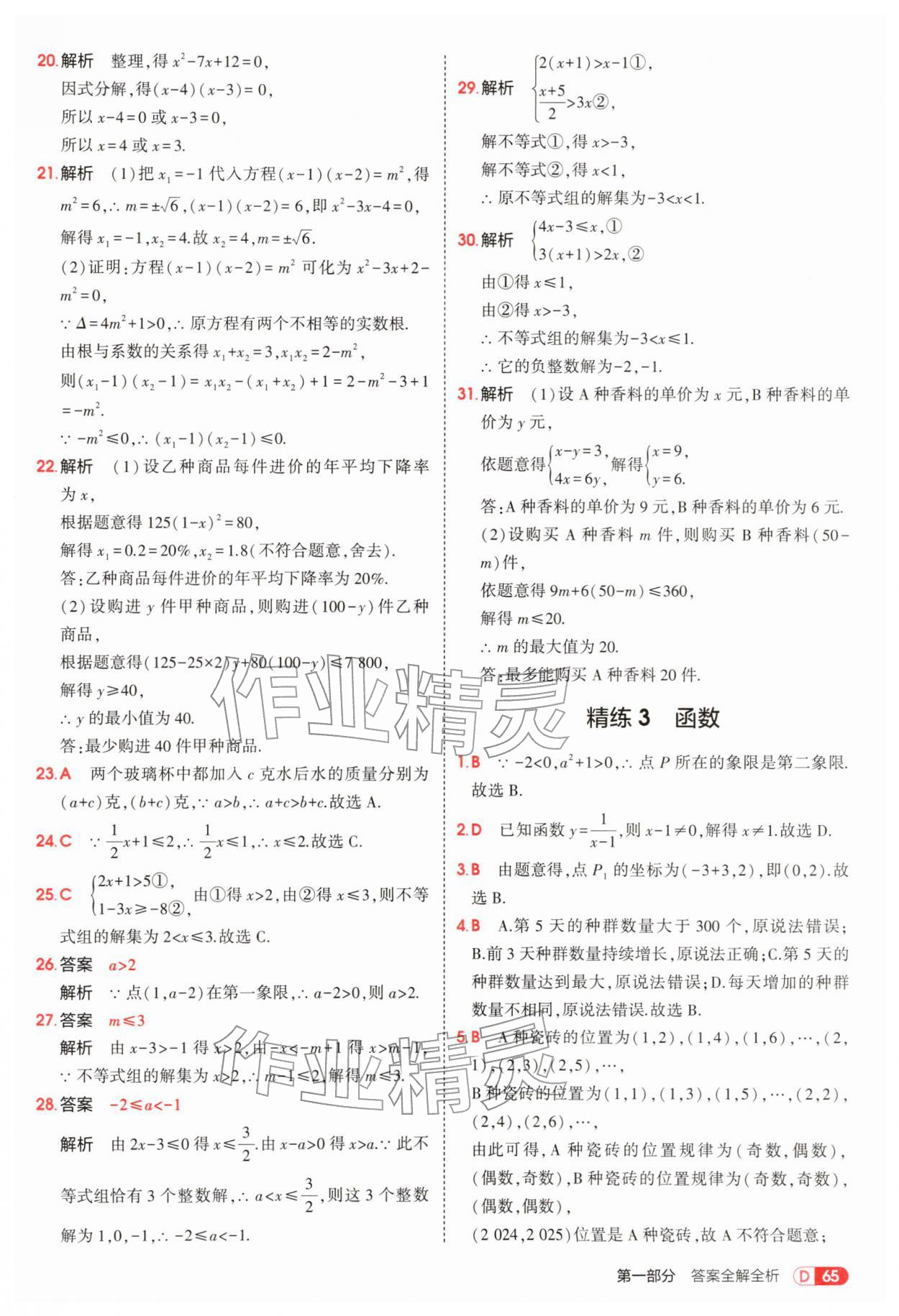 2026年5年中考3年模拟九年级数学下册人教版参考答案第65页