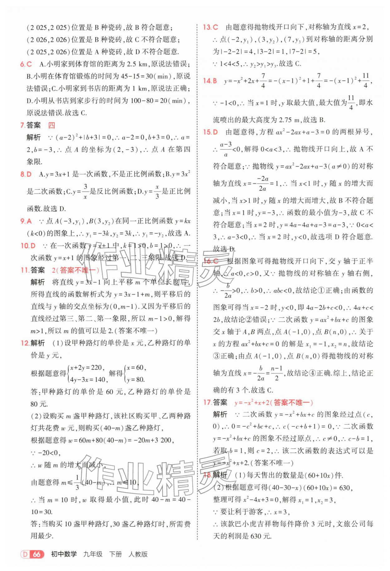 2026年5年中考3年模拟九年级数学下册人教版参考答案第66页