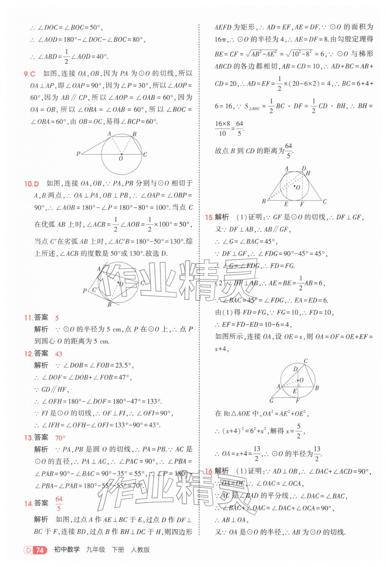 2026年5年中考3年模拟九年级数学下册人教版参考答案第74页