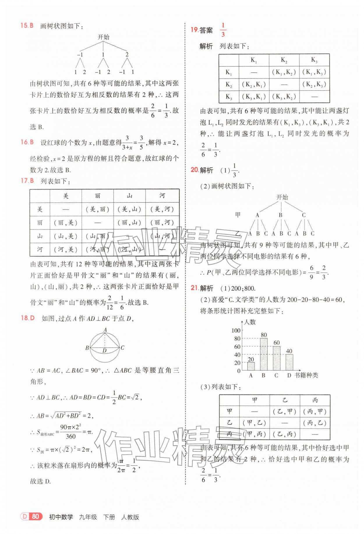 2026年5年中考3年模拟九年级数学下册人教版参考答案第80页