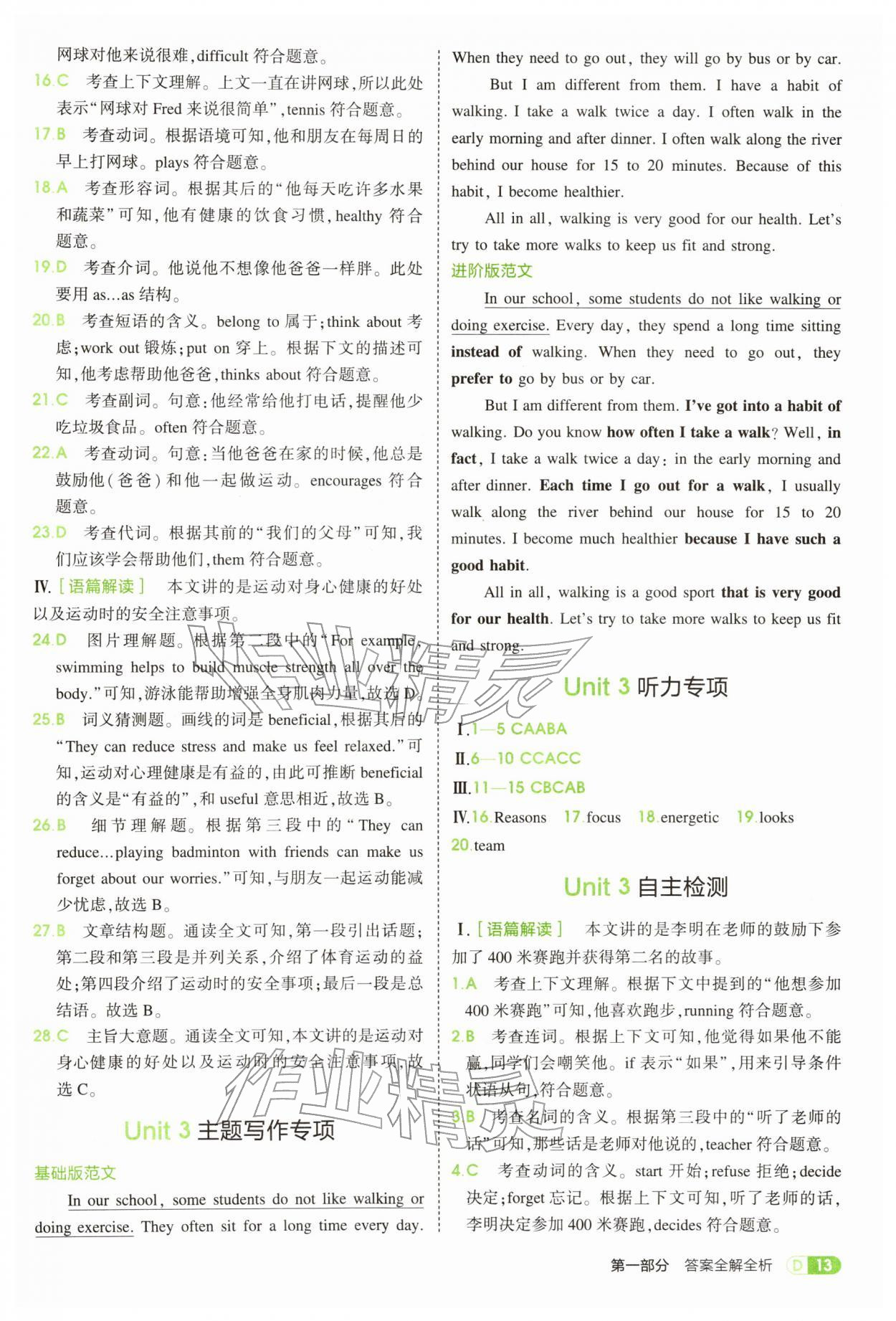 2026年5年中考3年模拟七年级英语下册人教版参考答案第13页