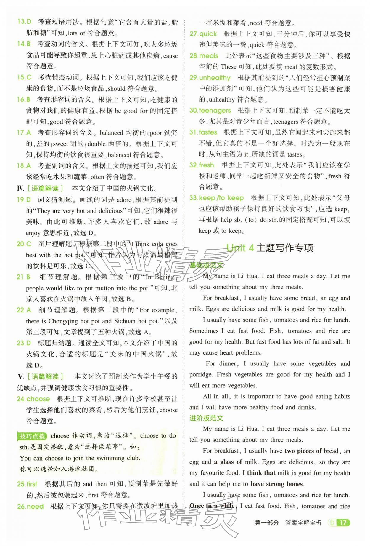 2026年5年中考3年模拟七年级英语下册人教版参考答案第17页