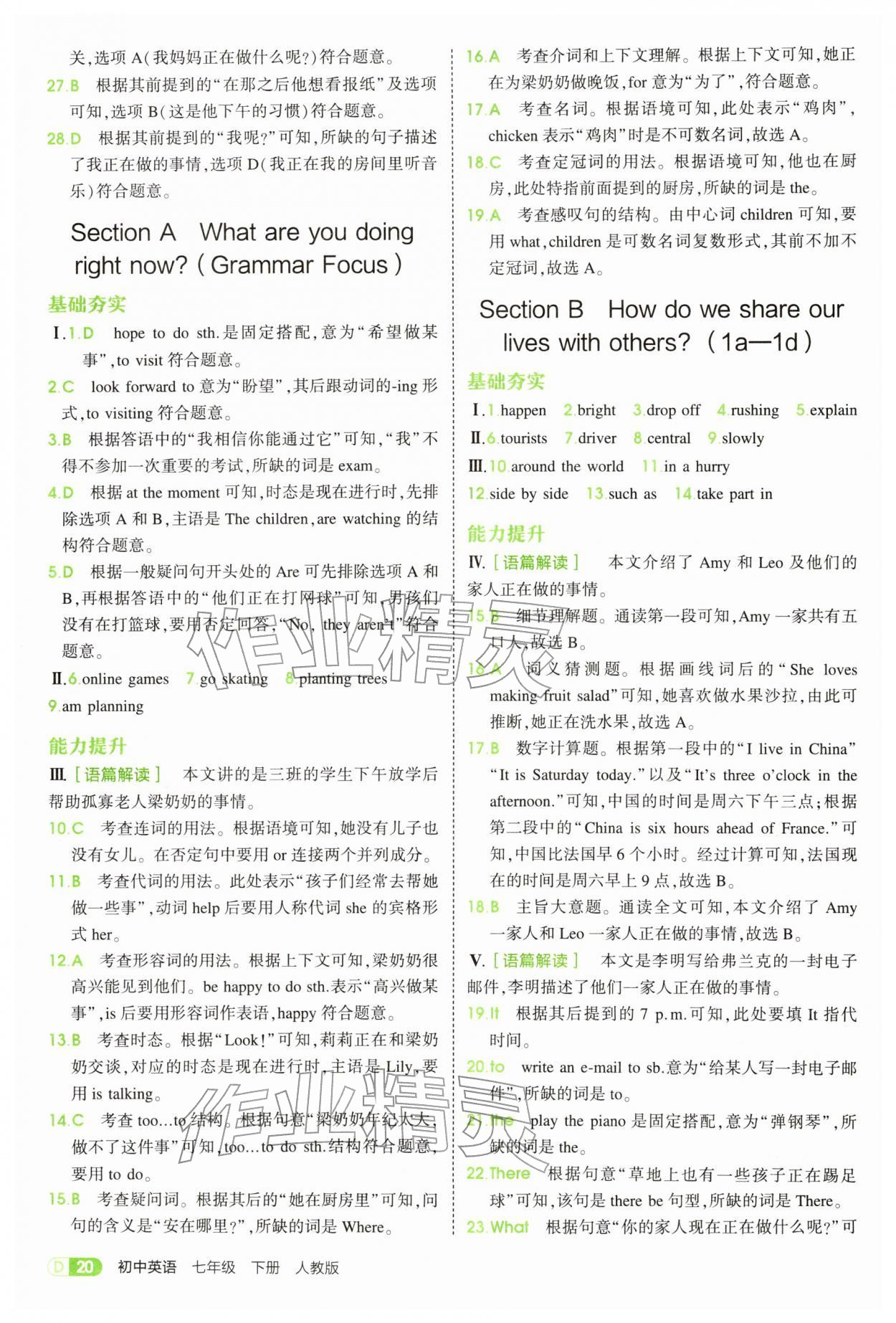2026年5年中考3年模拟七年级英语下册人教版参考答案第20页