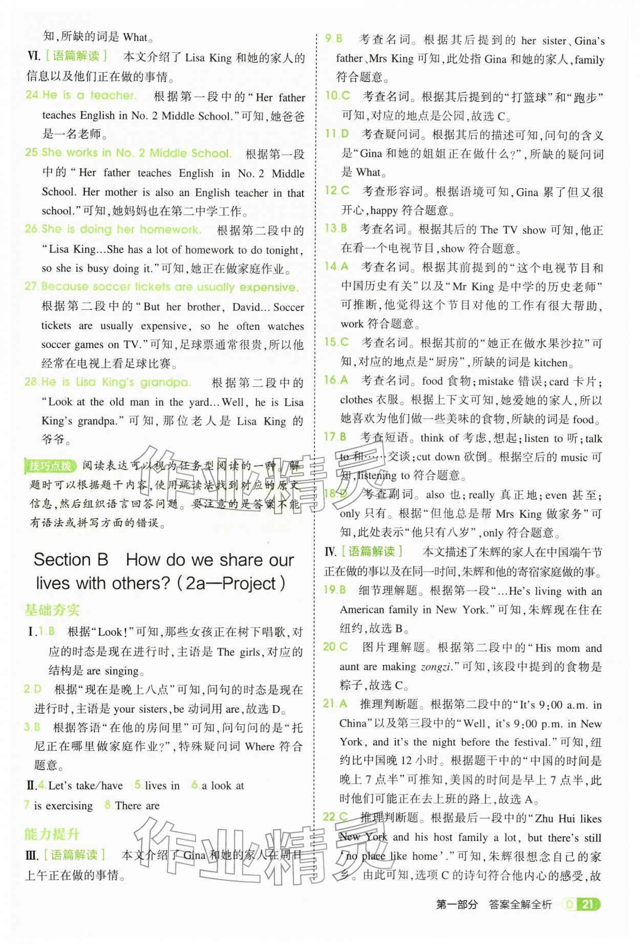 2026年5年中考3年模拟七年级英语下册人教版参考答案第21页
