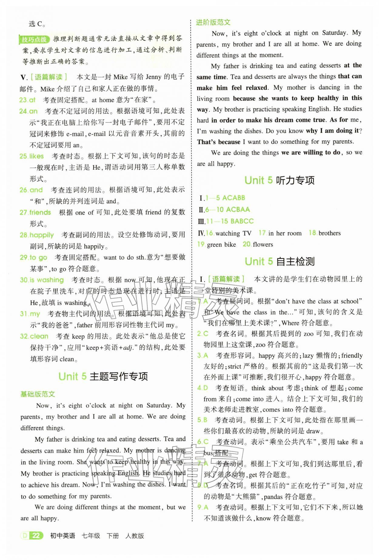 2026年5年中考3年模拟七年级英语下册人教版参考答案第22页