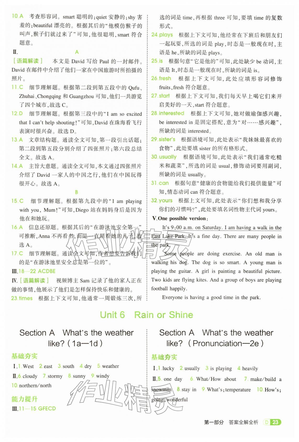 2026年5年中考3年模拟七年级英语下册人教版参考答案第23页
