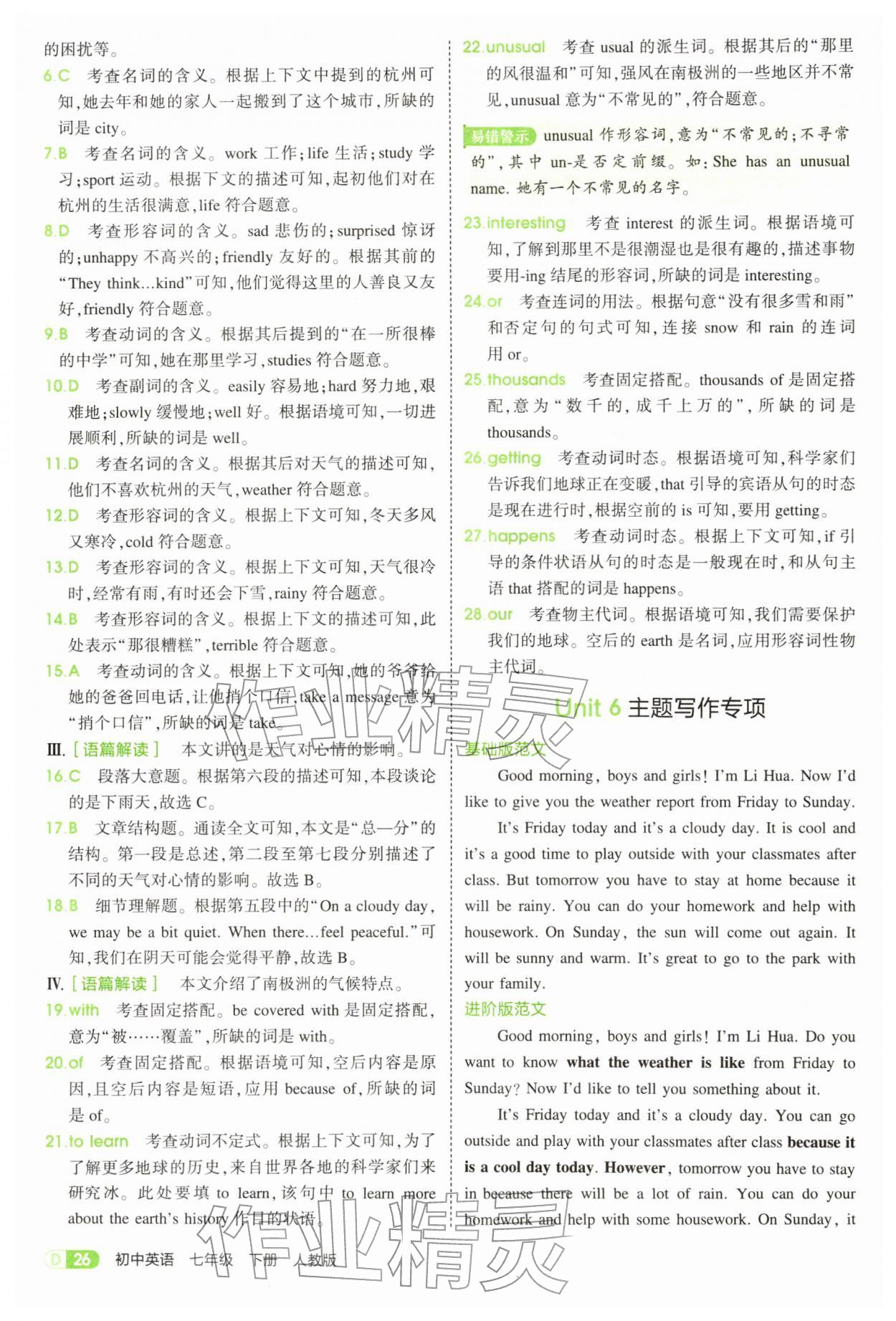 2026年5年中考3年模拟七年级英语下册人教版参考答案第26页