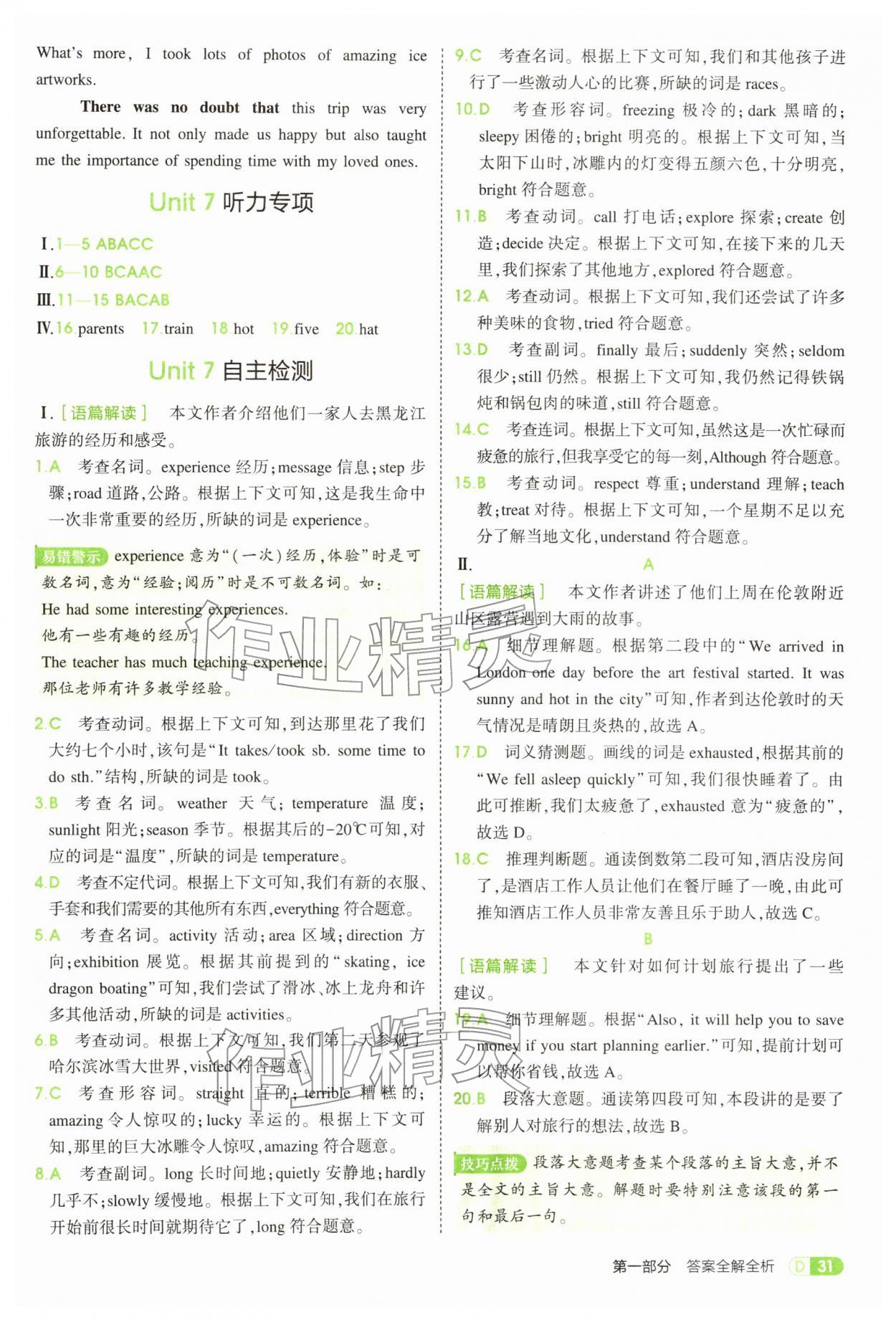 2026年5年中考3年模拟七年级英语下册人教版参考答案第31页