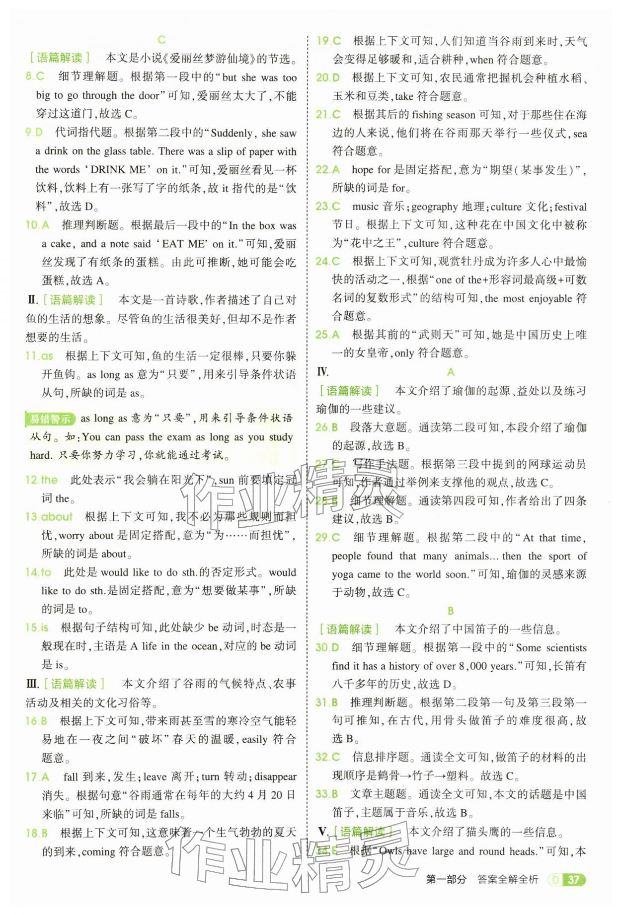 2026年5年中考3年模拟七年级英语下册人教版参考答案第37页