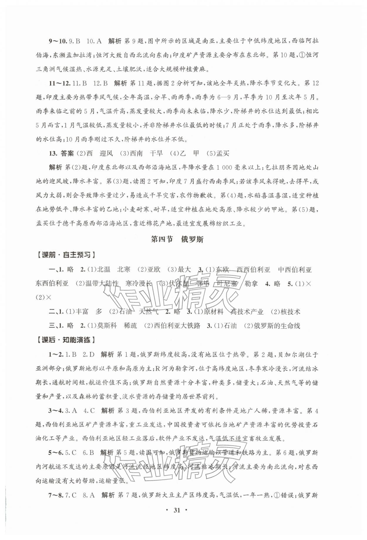 2026年同步练习册人民教育出版社七年级地理下册人教版江苏专版第7页