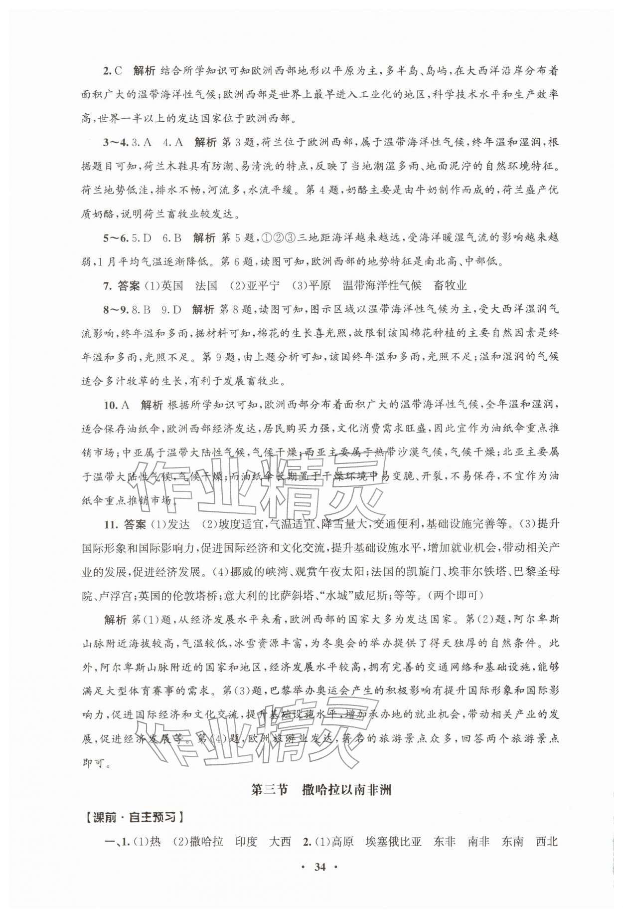 2026年同步练习册人民教育出版社七年级地理下册人教版江苏专版第10页