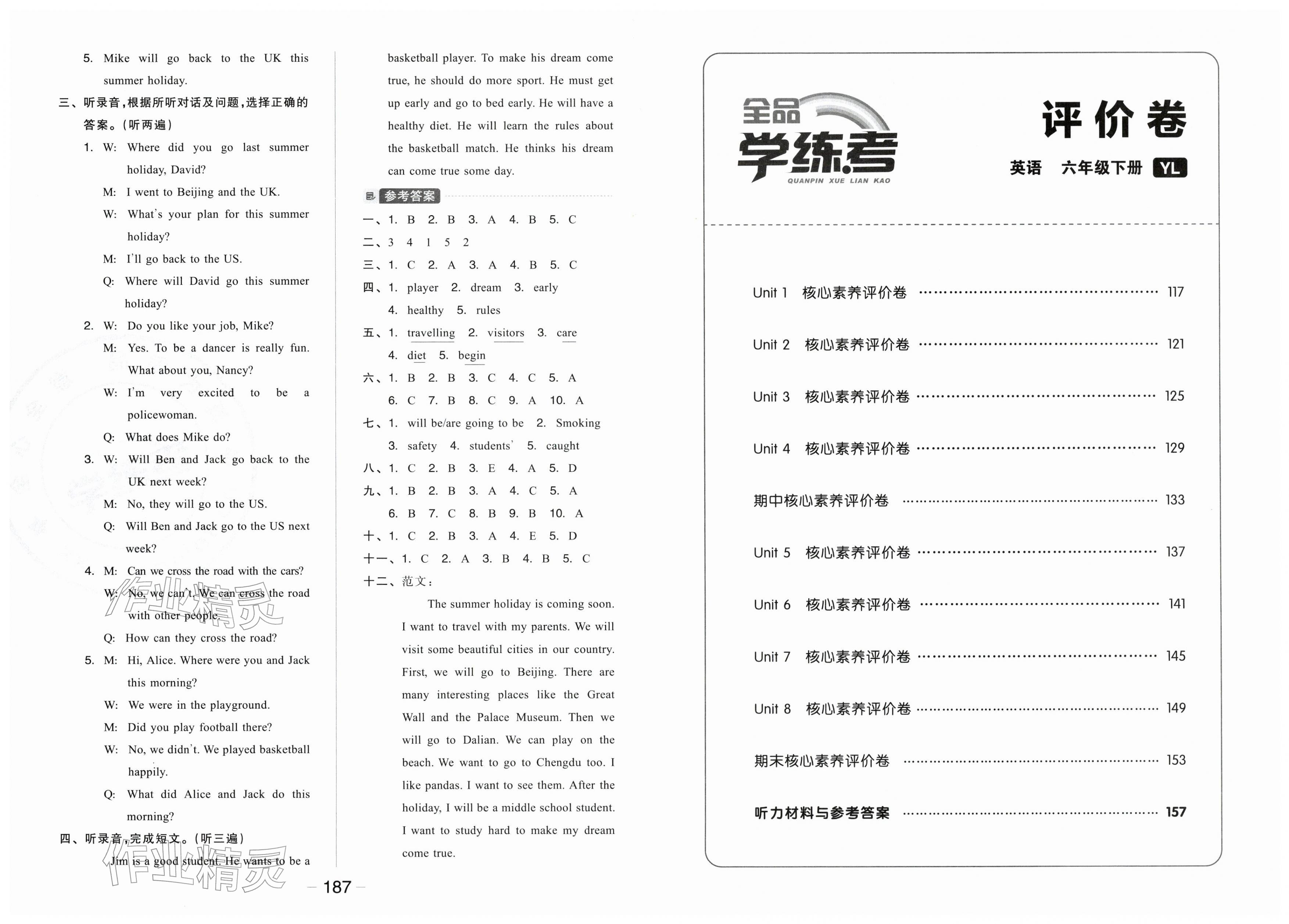 2026年全品学练考六年级英语下册译林版第16页