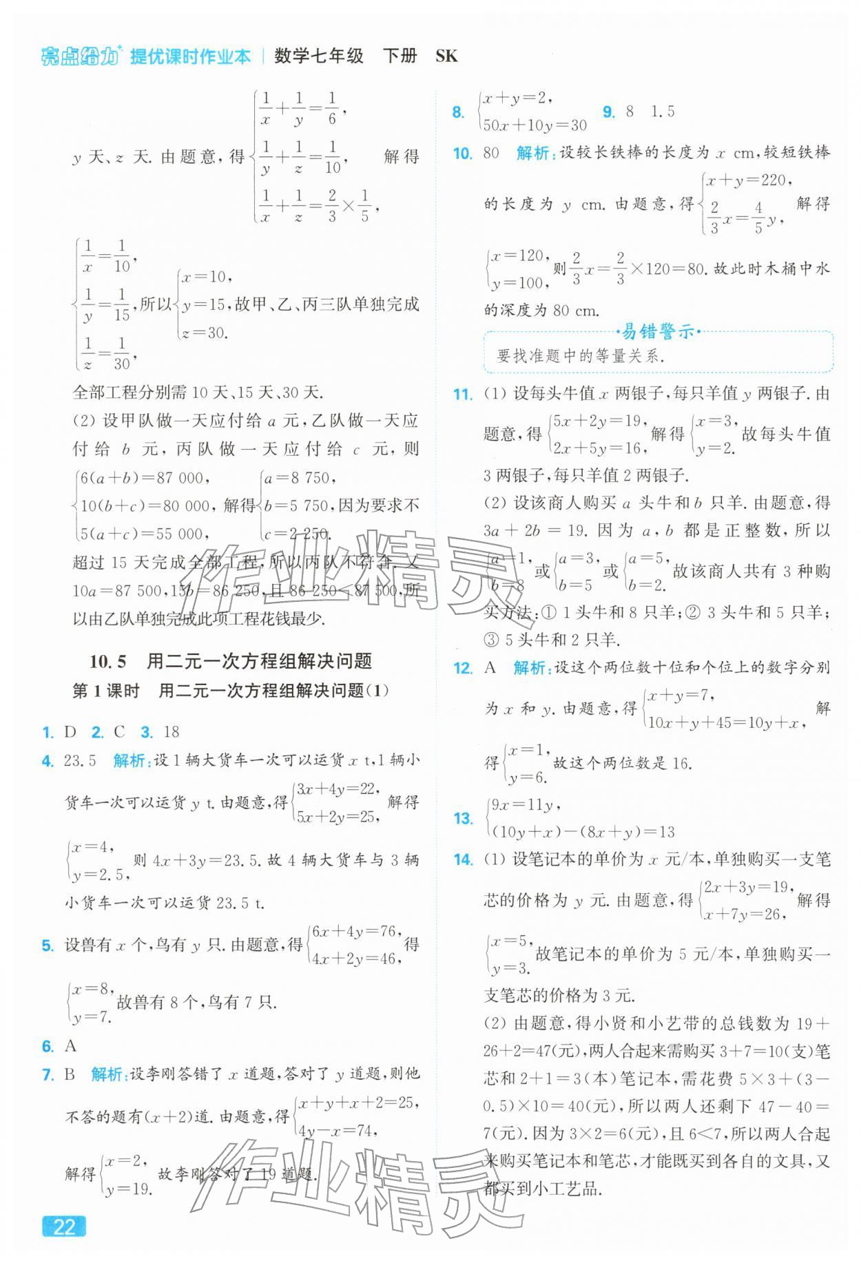 2026年亮点给力提优课时作业本七年级数学下册苏科版第26页