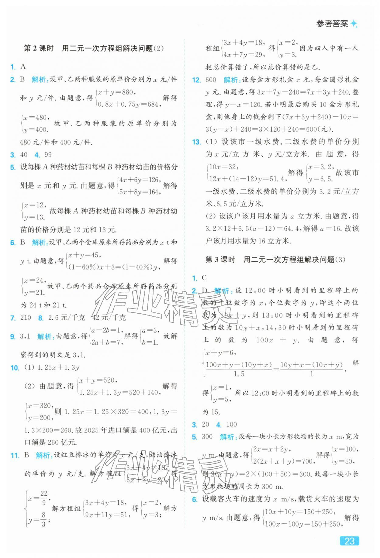 2026年亮点给力提优课时作业本七年级数学下册苏科版第27页