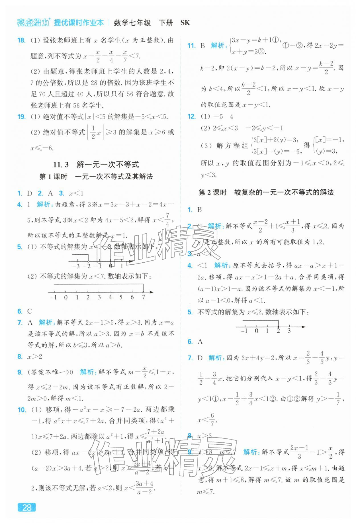 2026年亮点给力提优课时作业本七年级数学下册苏科版第32页