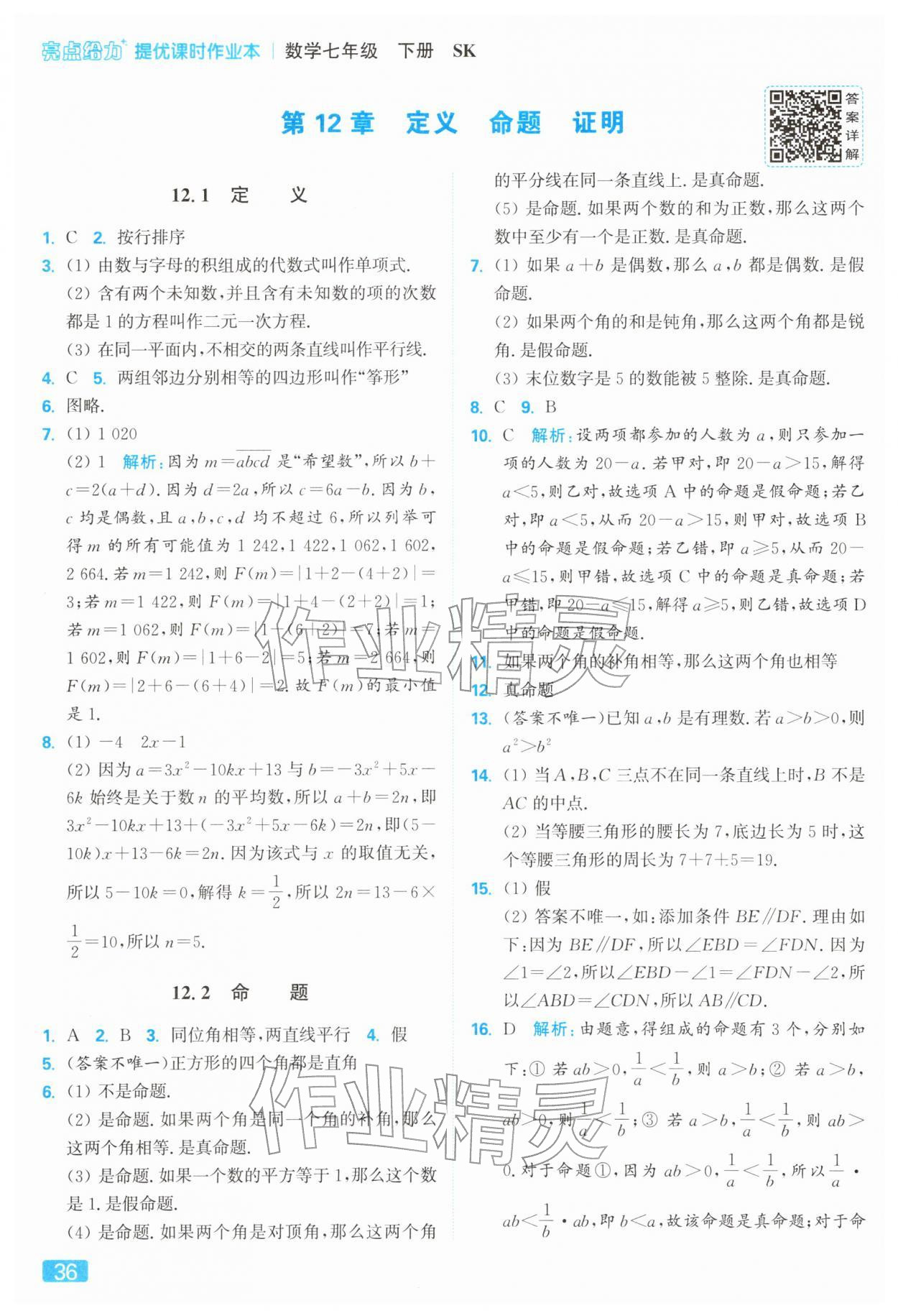 2026年亮点给力提优课时作业本七年级数学下册苏科版第40页