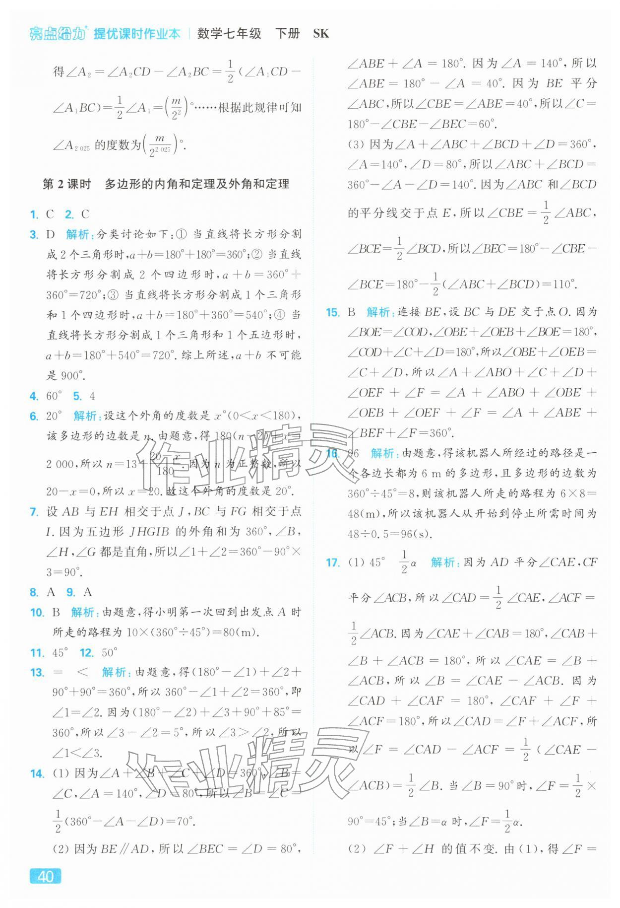2026年亮点给力提优课时作业本七年级数学下册苏科版第44页