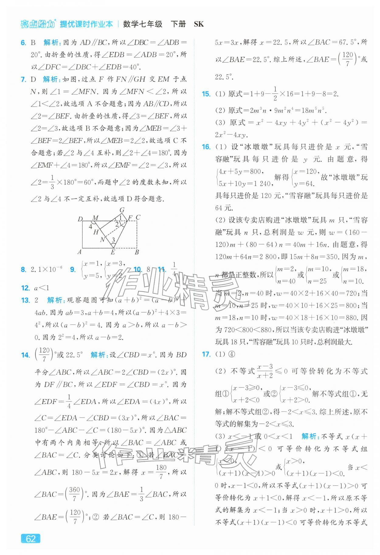 2026年亮点给力提优课时作业本七年级数学下册苏科版第66页