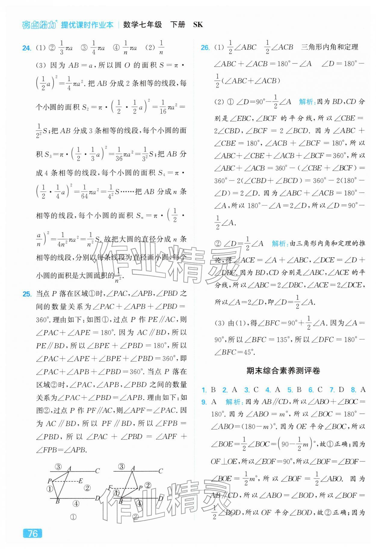 2026年亮点给力提优课时作业本七年级数学下册苏科版第80页