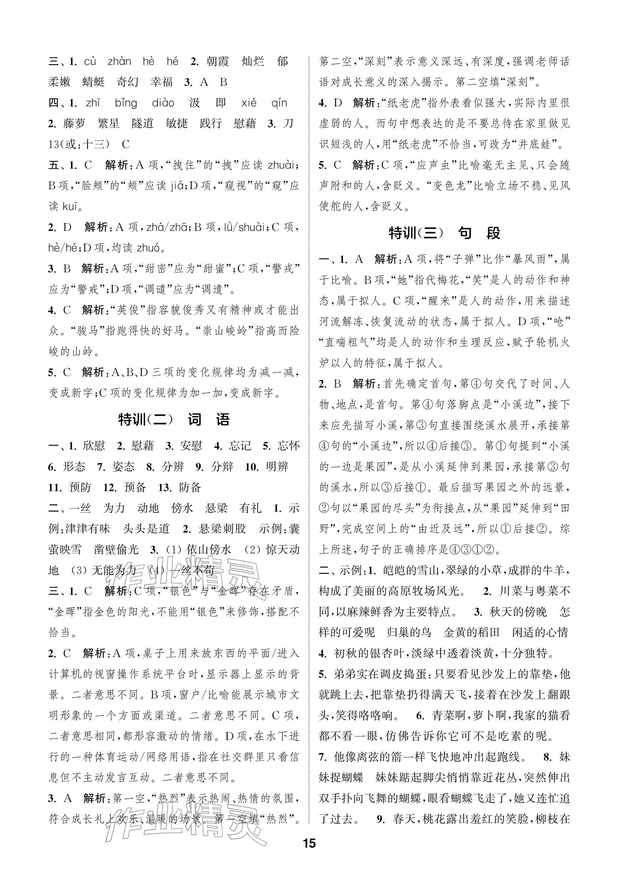 2026年课时作业本阅读与闯关四年级语文下册人教版参考答案第15页