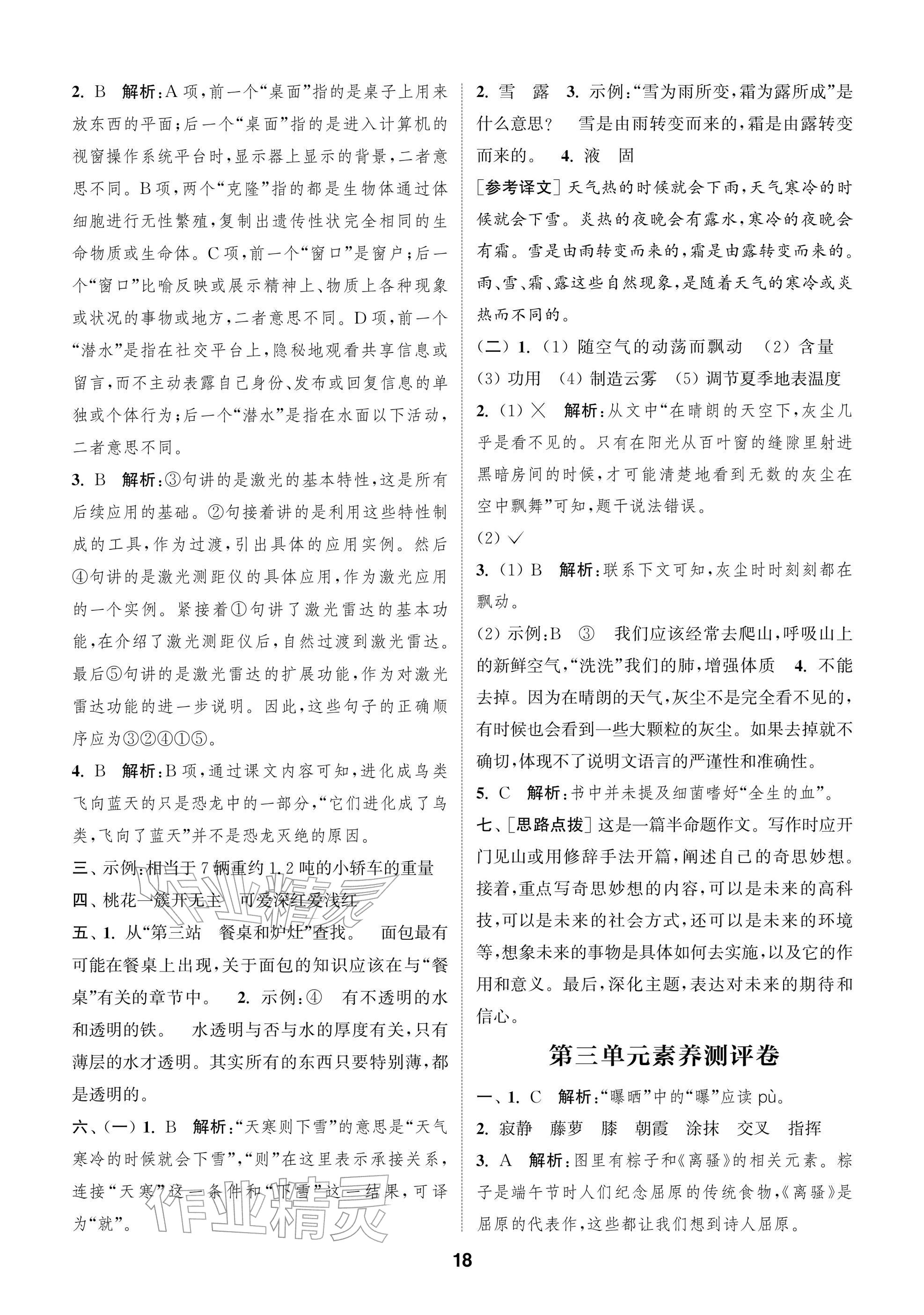 2026年课时作业本阅读与闯关四年级语文下册人教版参考答案第18页