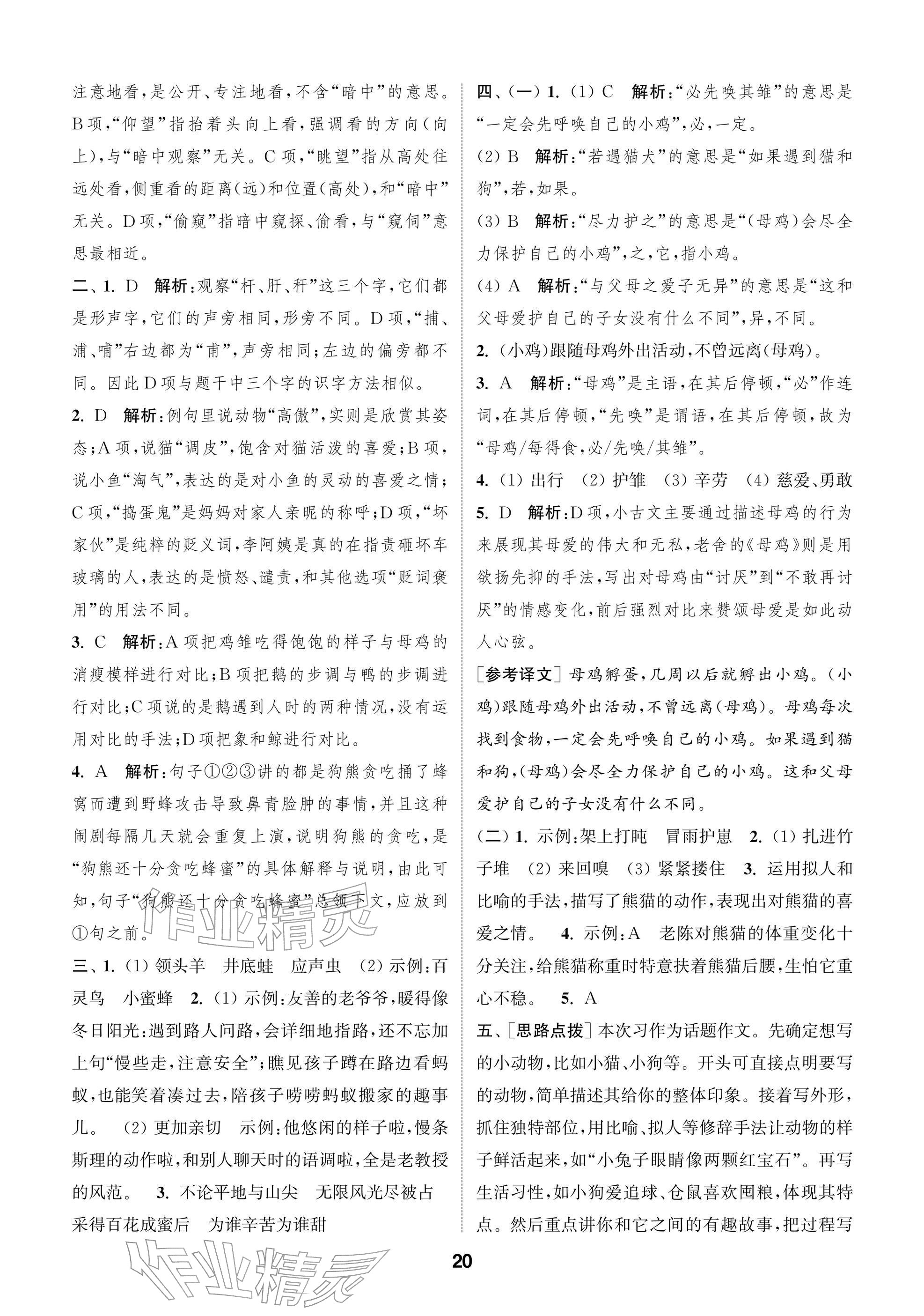 2026年课时作业本阅读与闯关四年级语文下册人教版参考答案第20页