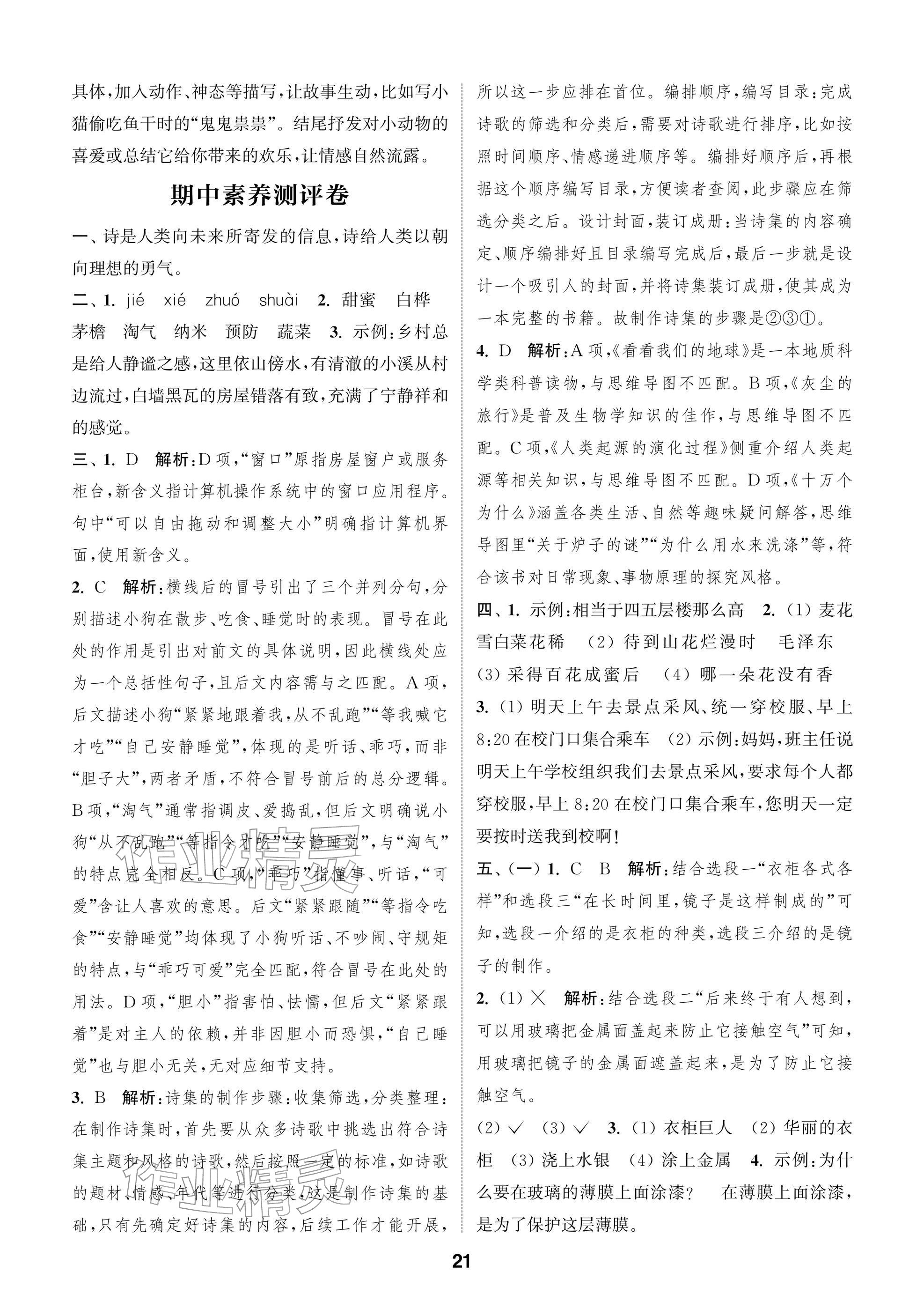 2026年课时作业本阅读与闯关四年级语文下册人教版参考答案第21页