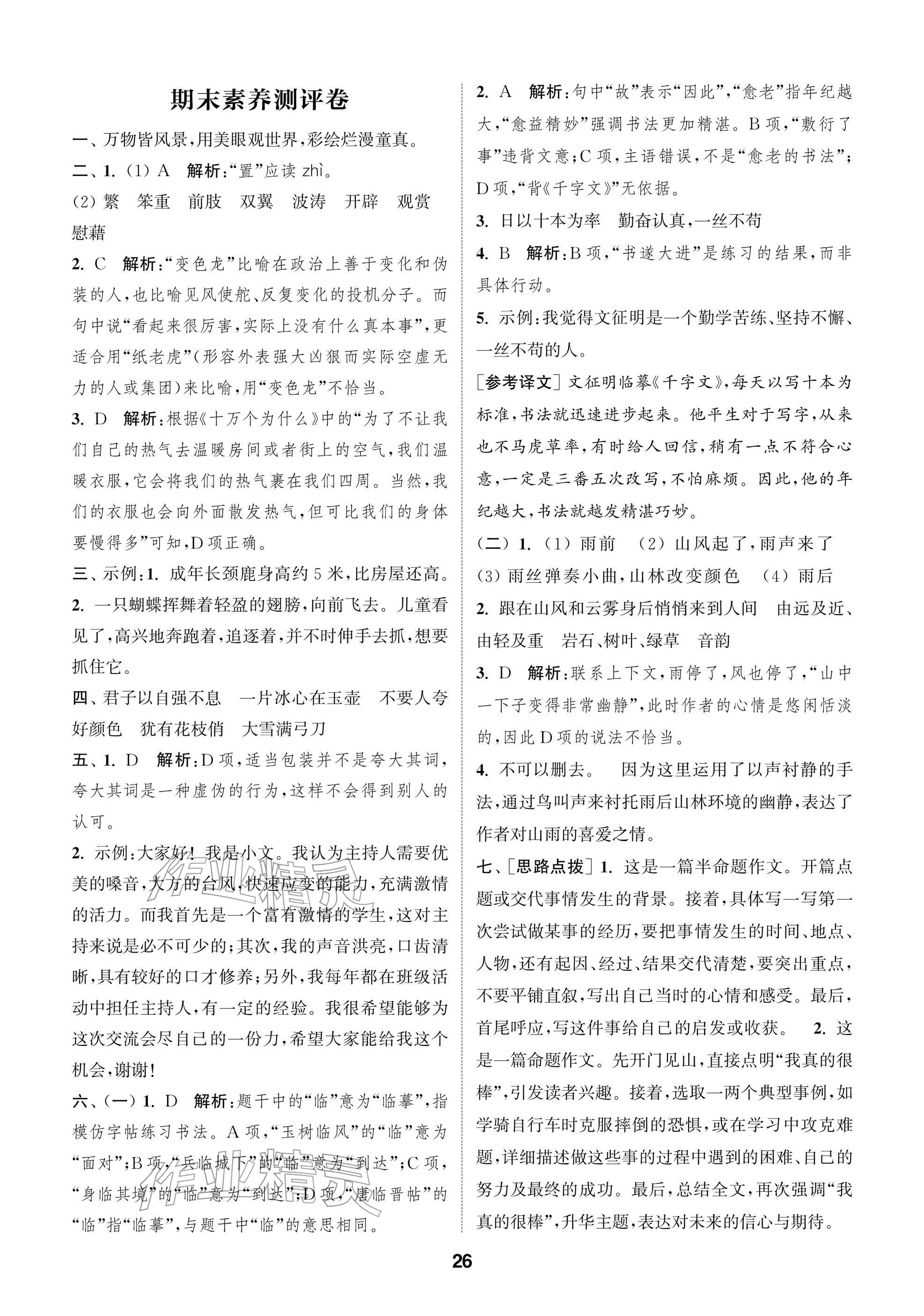 2026年课时作业本阅读与闯关四年级语文下册人教版参考答案第26页