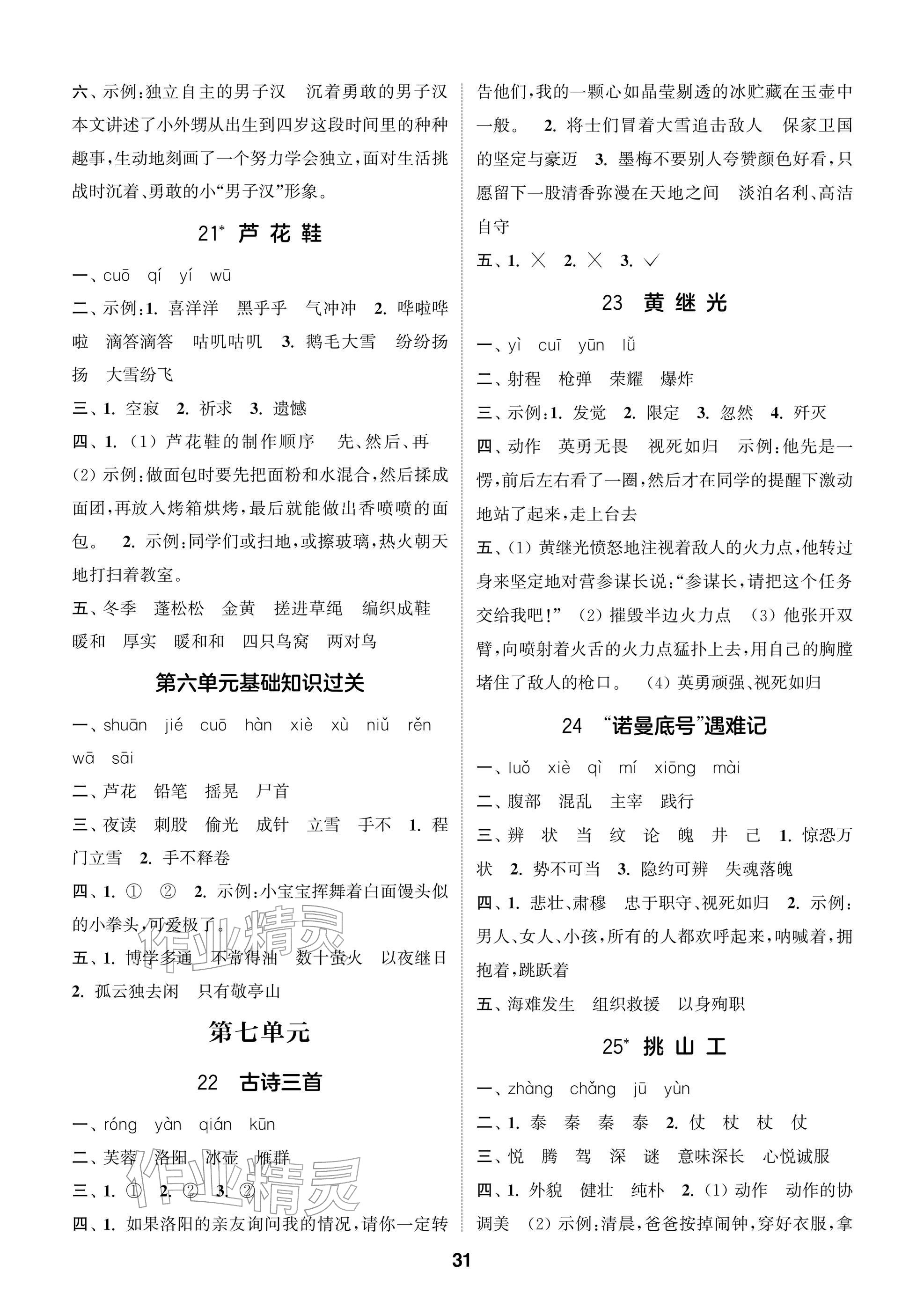 2026年课时作业本阅读与闯关四年级语文下册人教版参考答案第31页