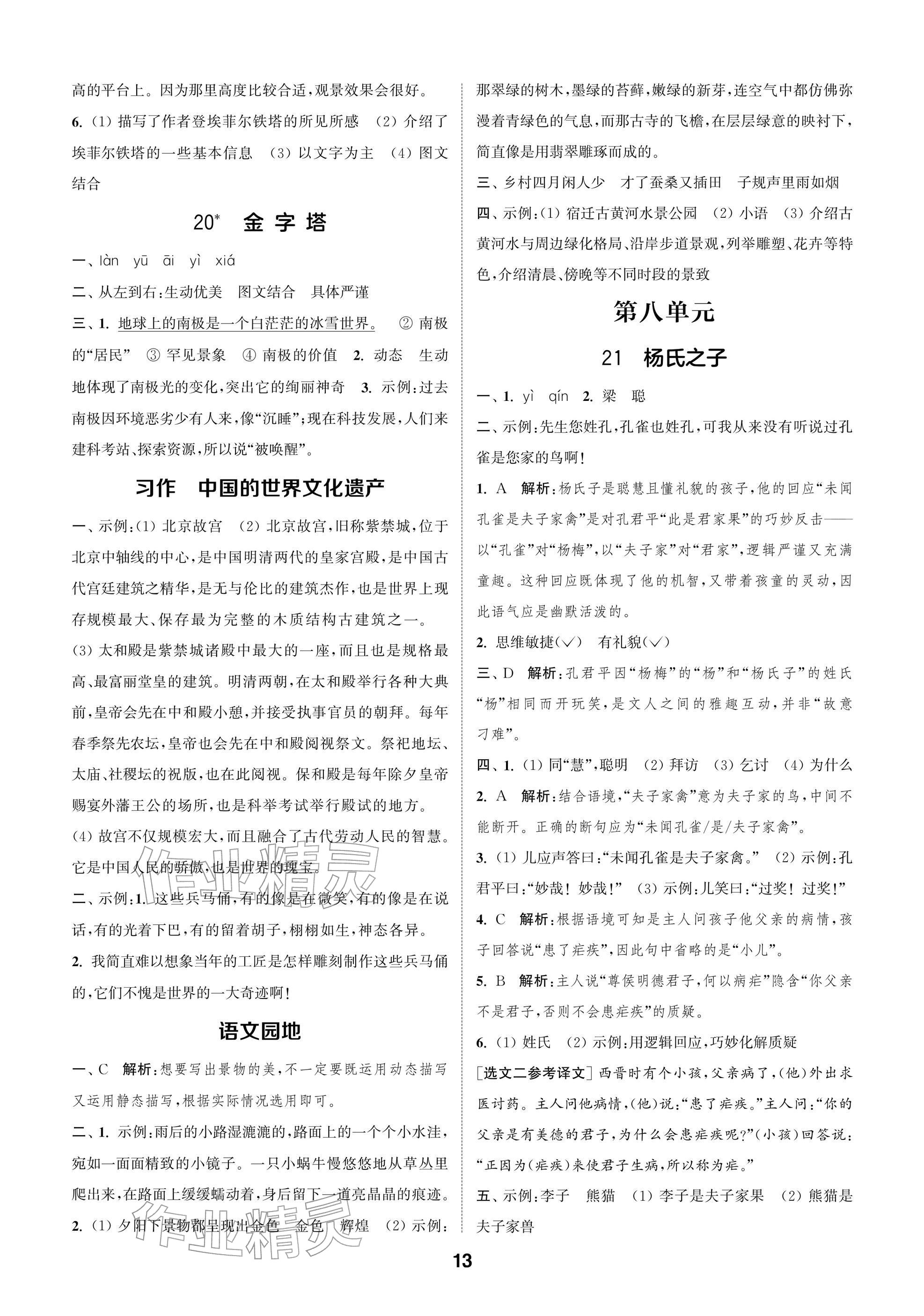 2026年课时作业本阅读与闯关五年级语文下册人教版参考答案第13页
