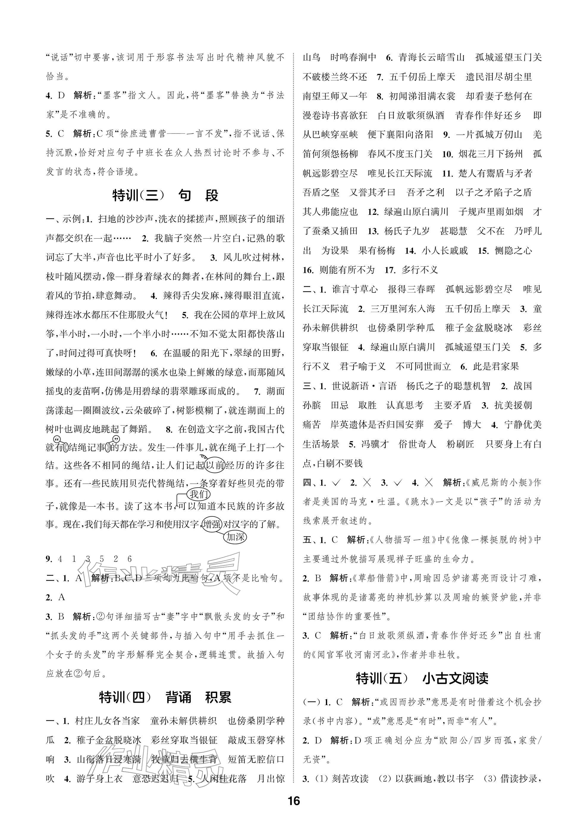 2026年课时作业本阅读与闯关五年级语文下册人教版参考答案第16页