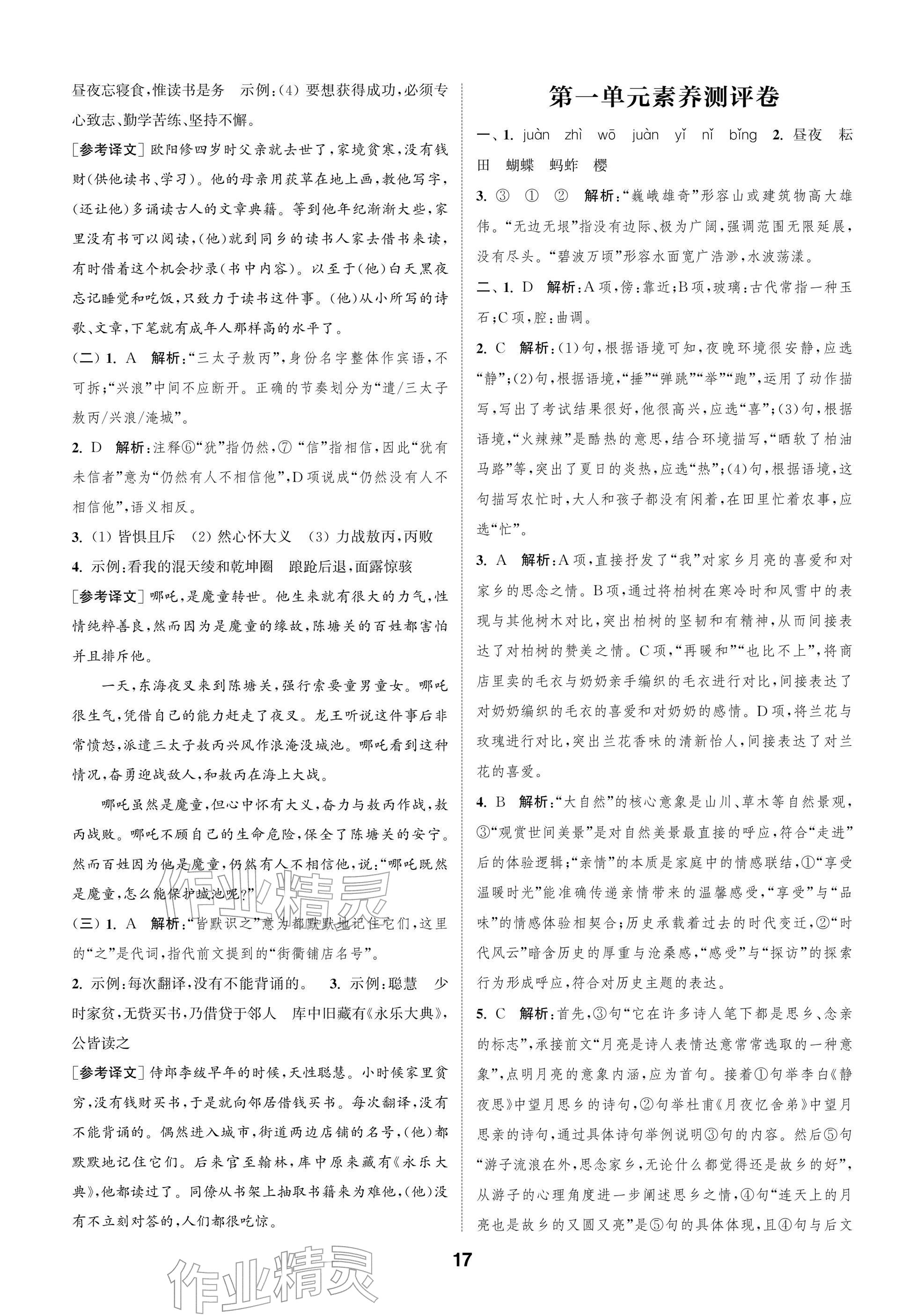 2026年课时作业本阅读与闯关五年级语文下册人教版参考答案第17页
