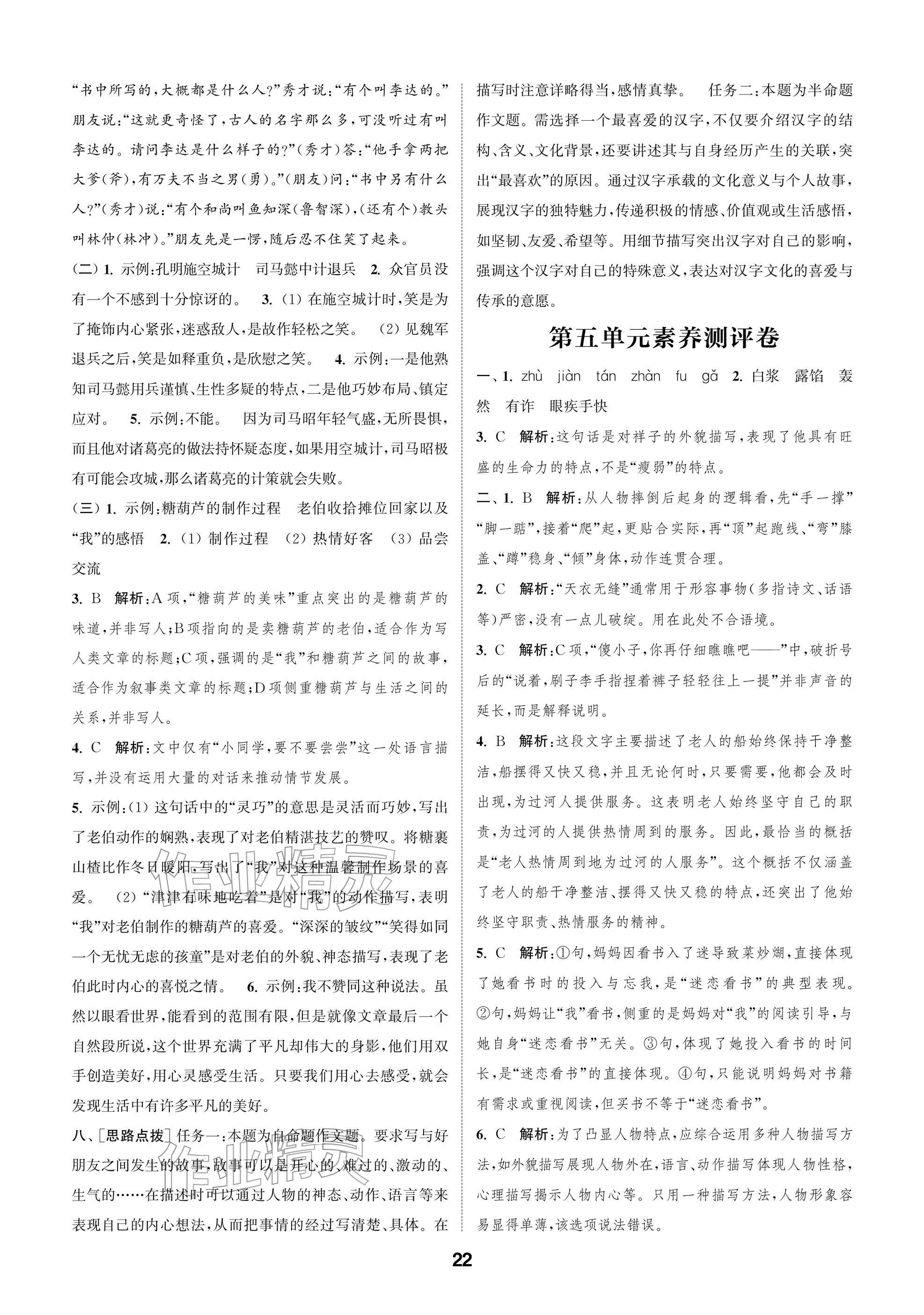 2026年课时作业本阅读与闯关五年级语文下册人教版参考答案第22页