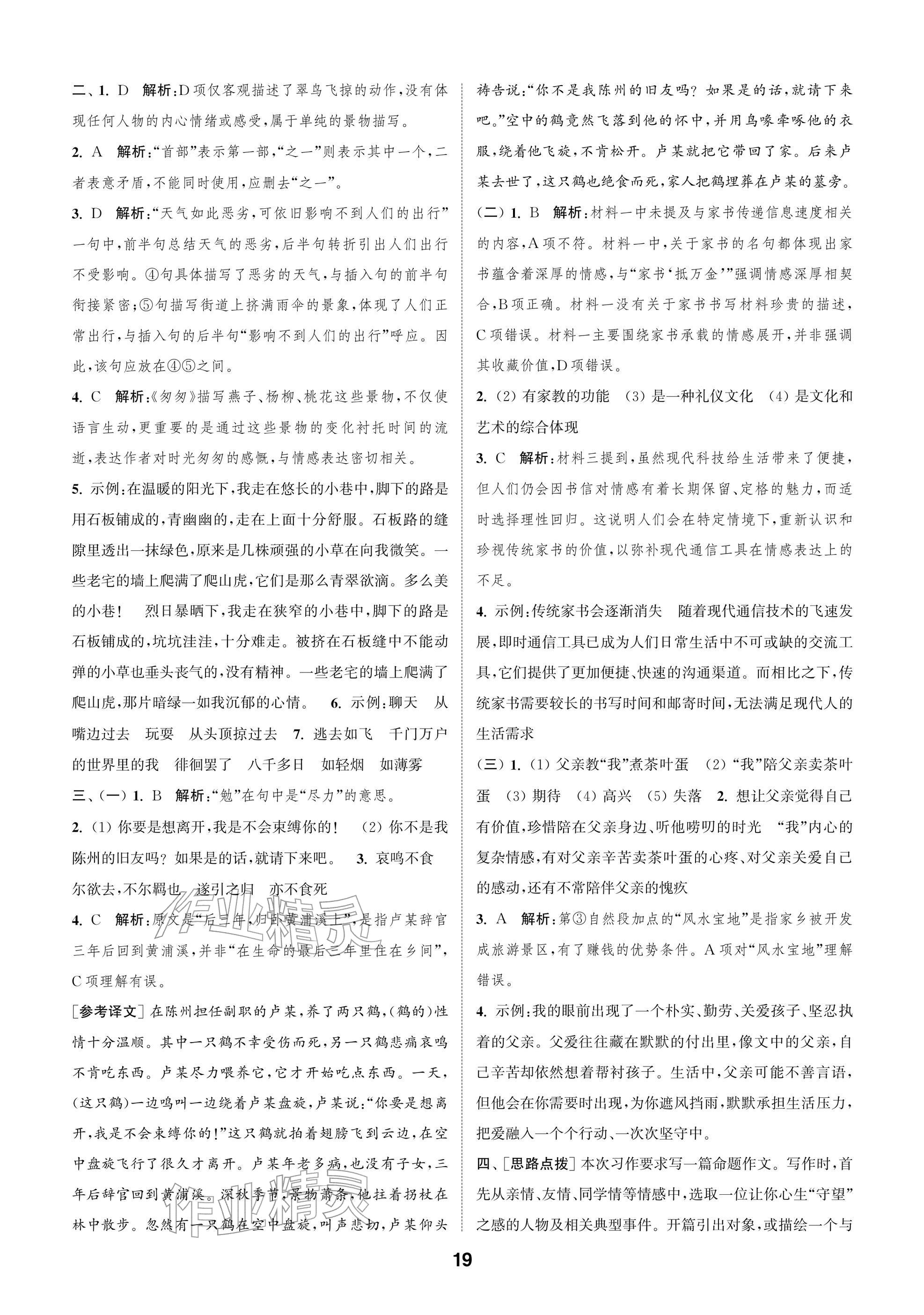 2026年课时作业本阅读与闯关六年级语文下册人教版参考答案第19页