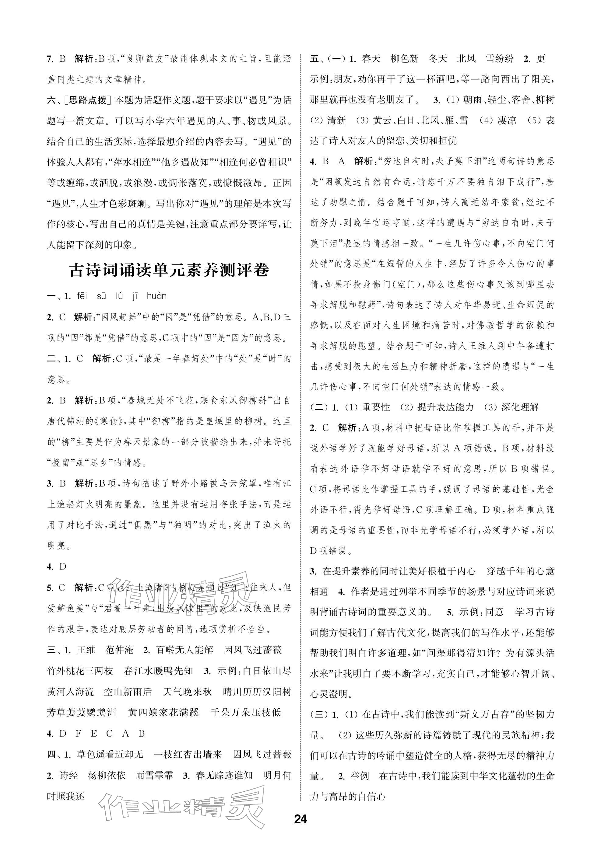 2026年课时作业本阅读与闯关六年级语文下册人教版参考答案第24页
