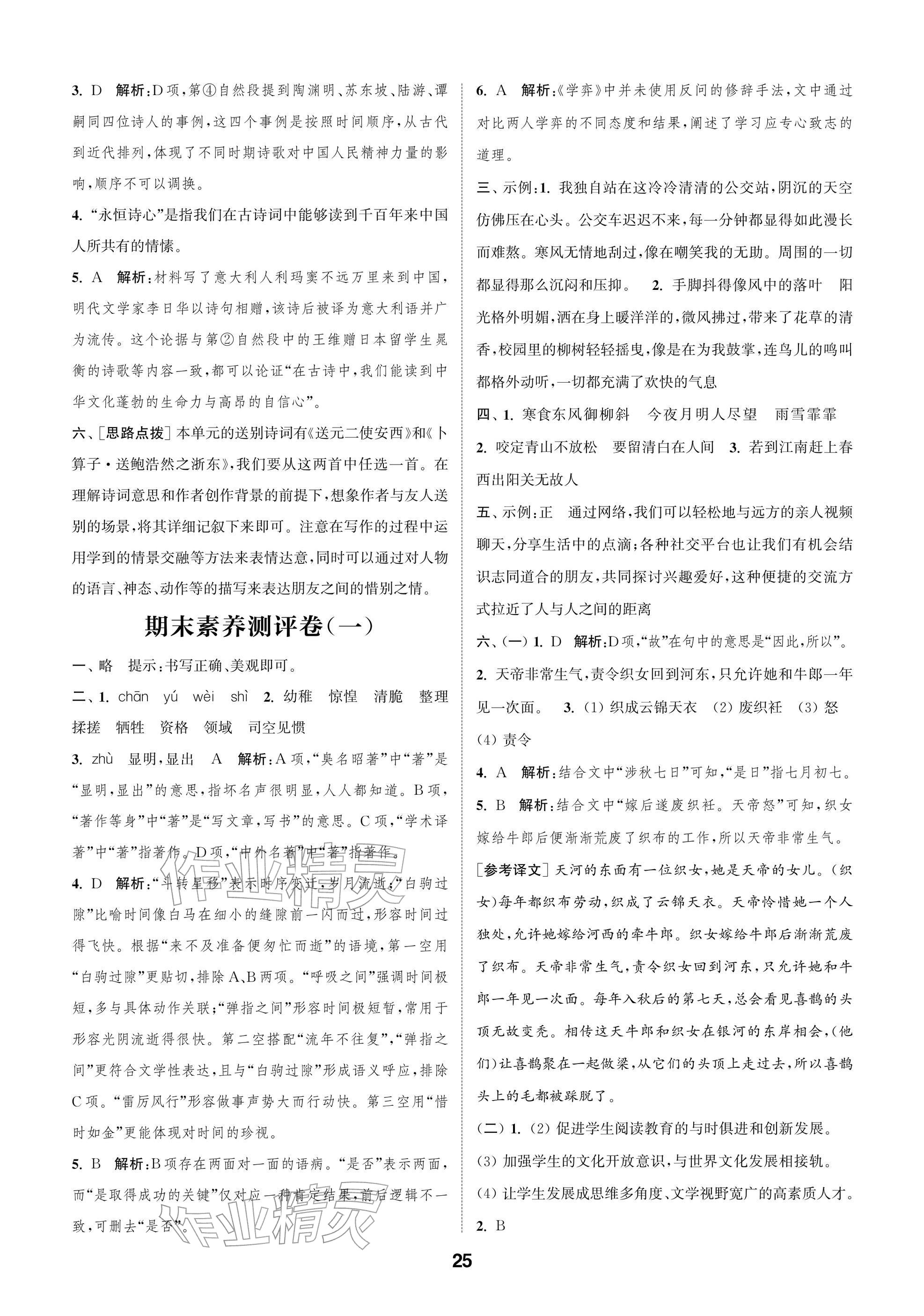 2026年课时作业本阅读与闯关六年级语文下册人教版参考答案第25页