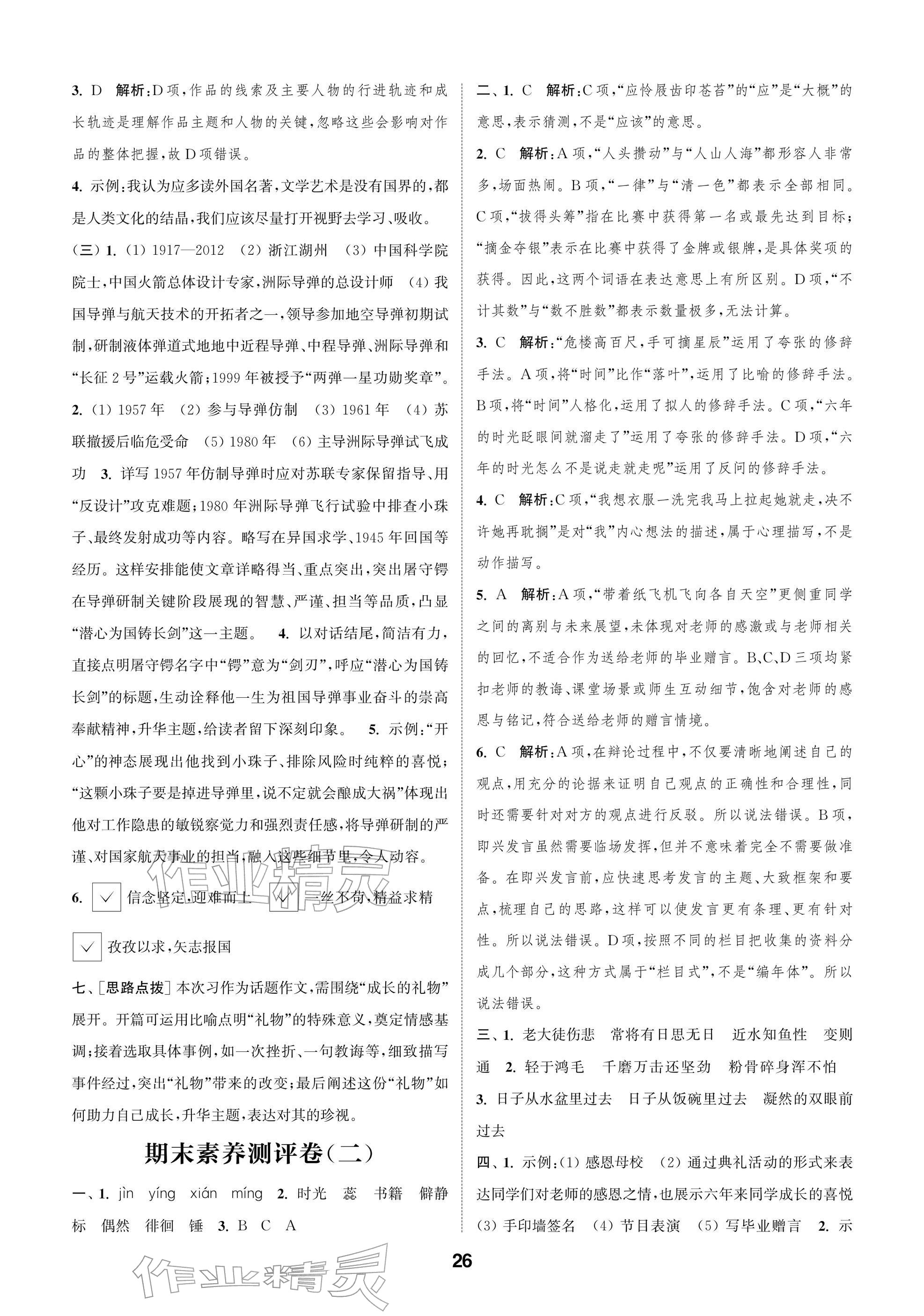 2026年课时作业本阅读与闯关六年级语文下册人教版参考答案第26页