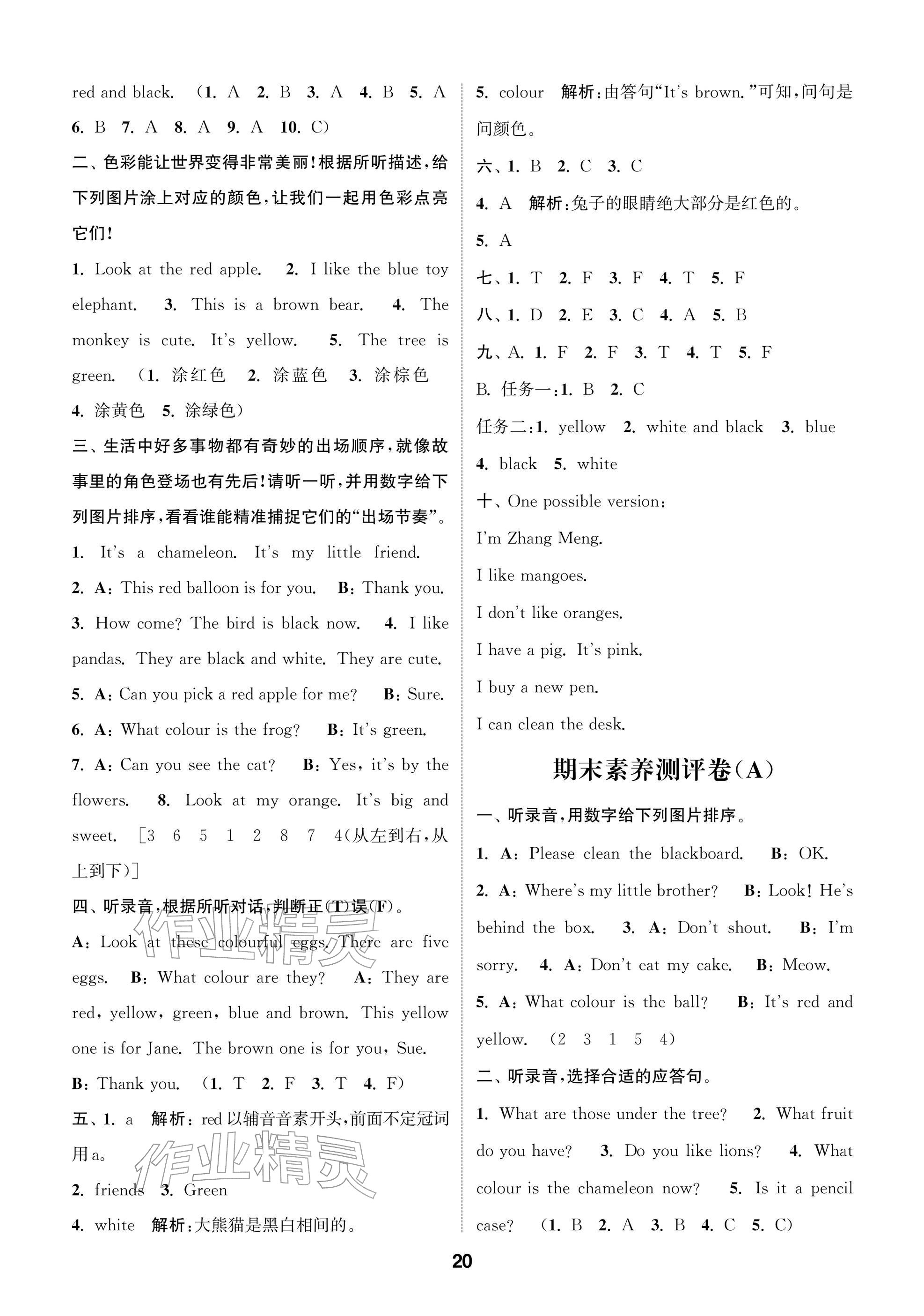 2026年课时作业本阅读与闯关三年级英语下册译林版参考答案第20页