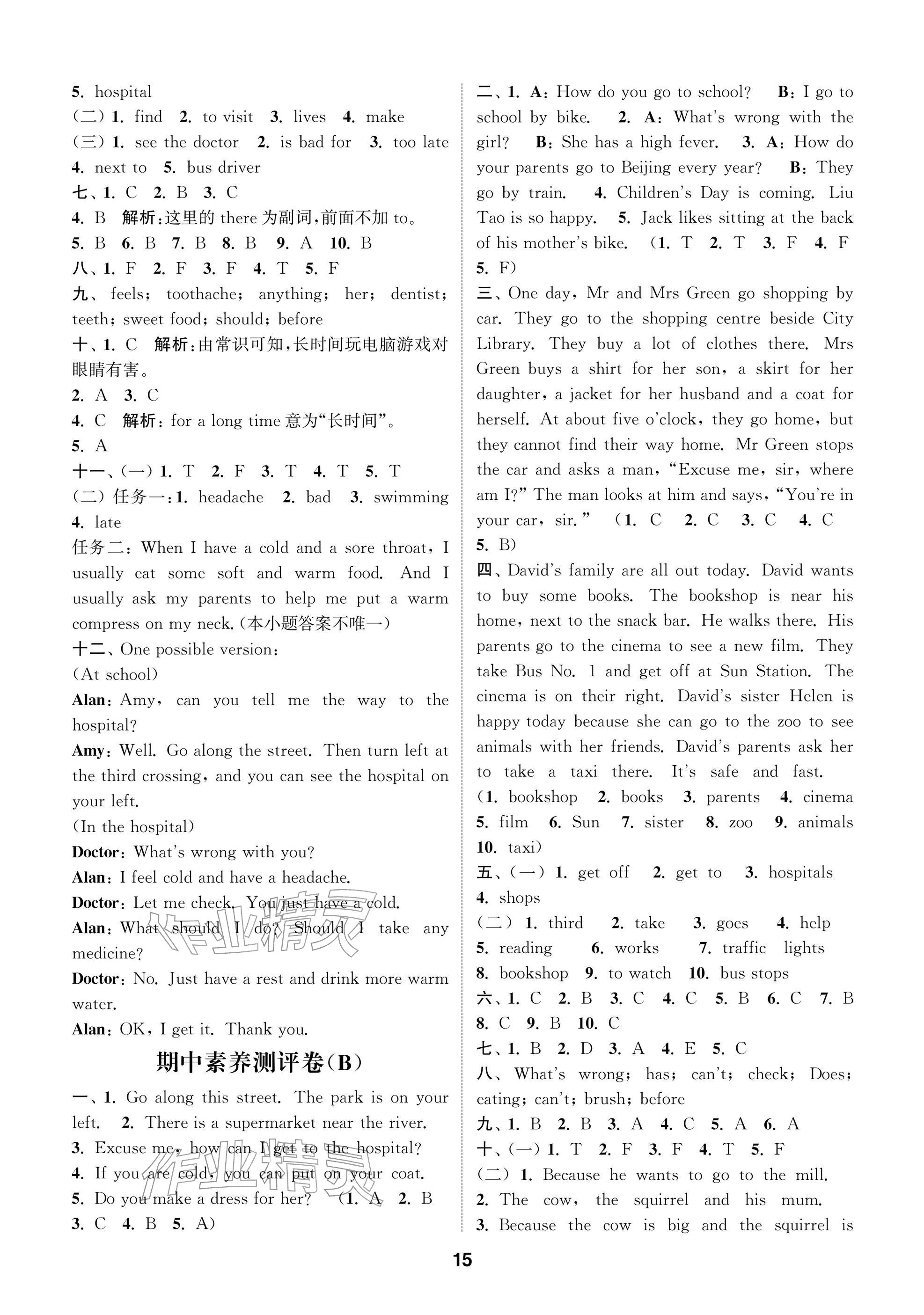 2026年课时作业本阅读与闯关五年级英语下册译林版参考答案第15页