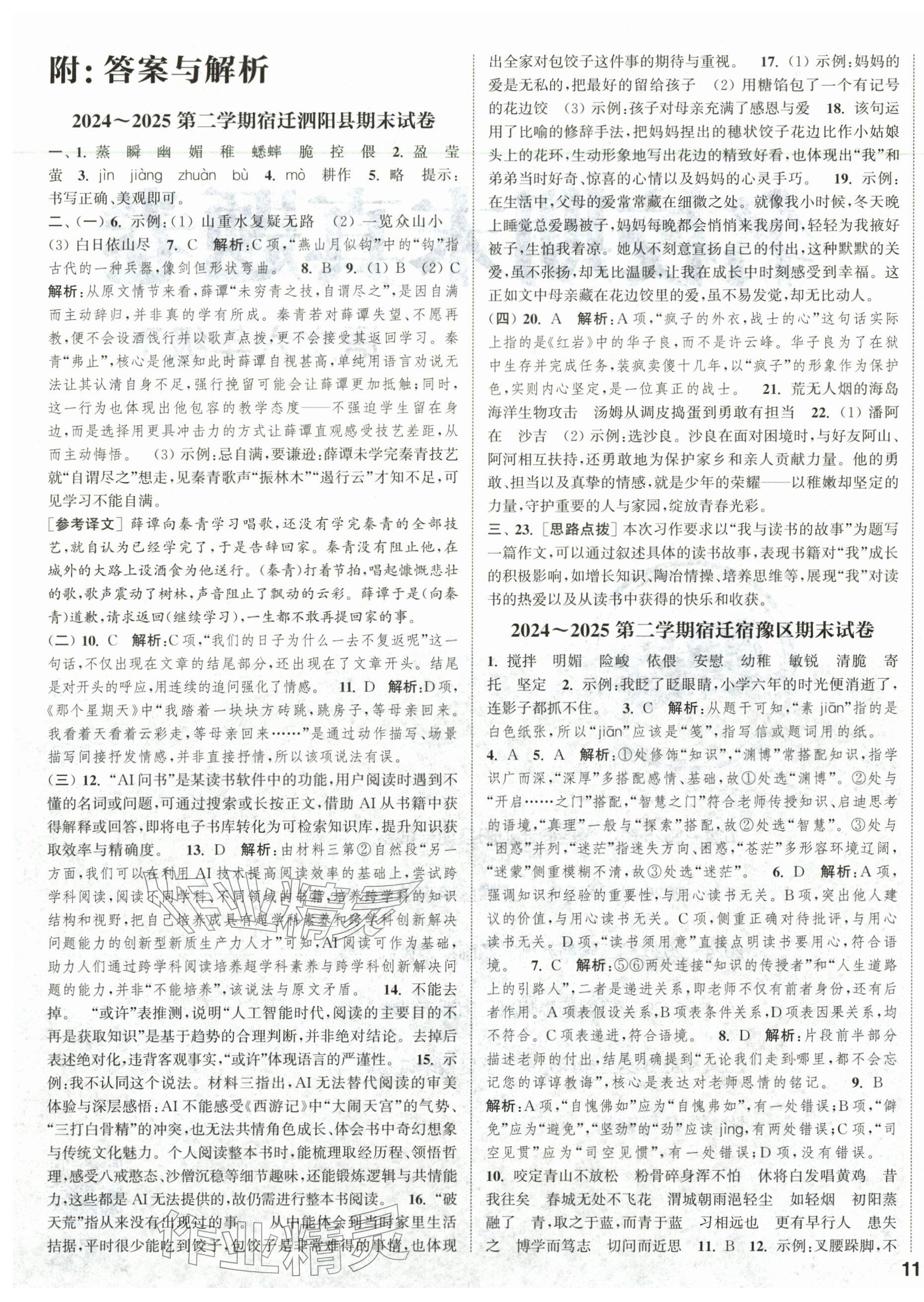 2026年课时作业本阅读与闯关六年级语文下册人教版参考答案第33页