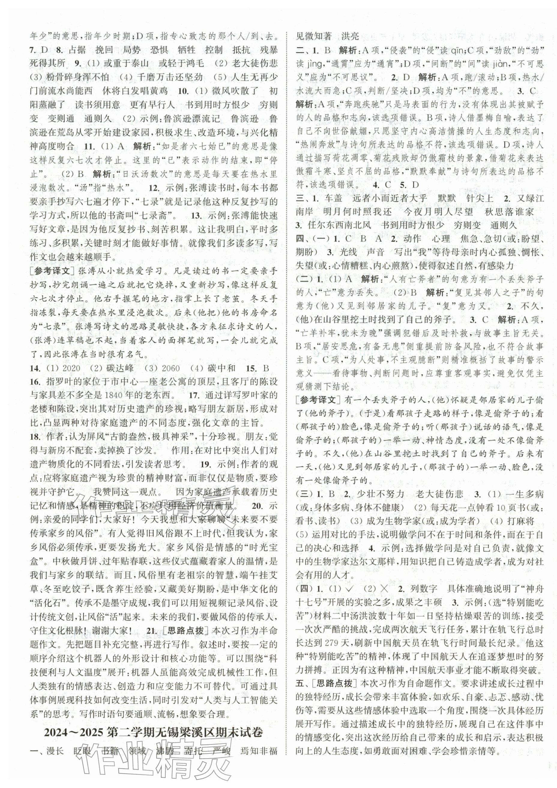 2026年课时作业本阅读与闯关六年级语文下册人教版参考答案第35页