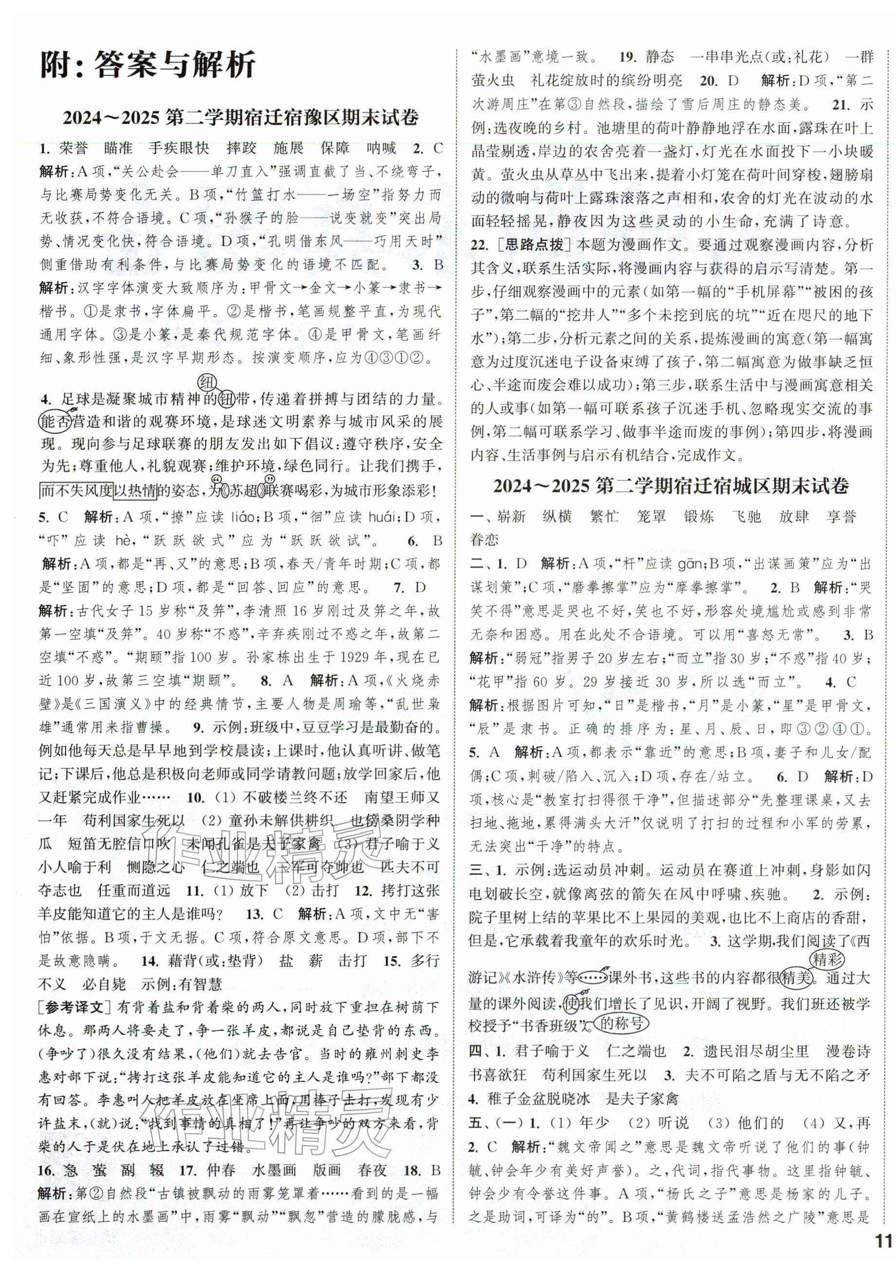 2026年课时作业本阅读与闯关五年级语文下册人教版参考答案第33页