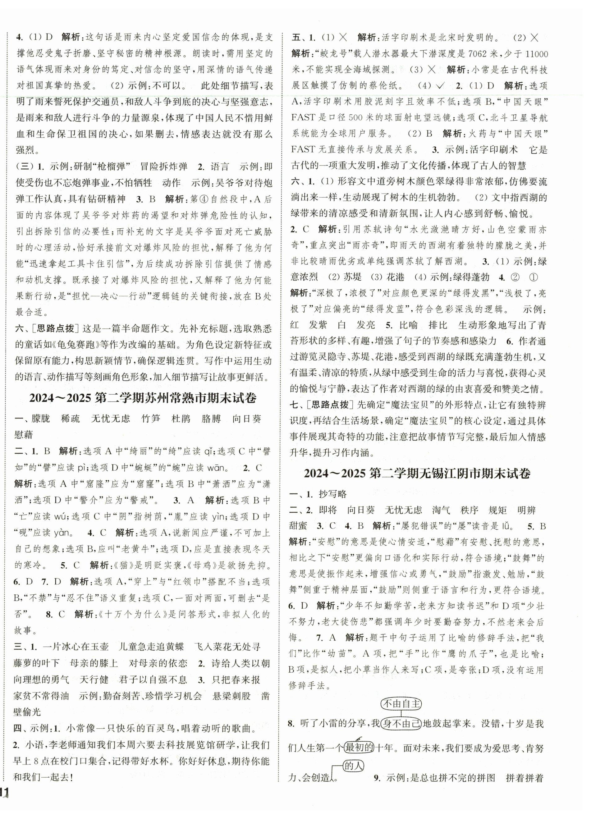 2026年课时作业本阅读与闯关四年级语文下册人教版参考答案第34页
