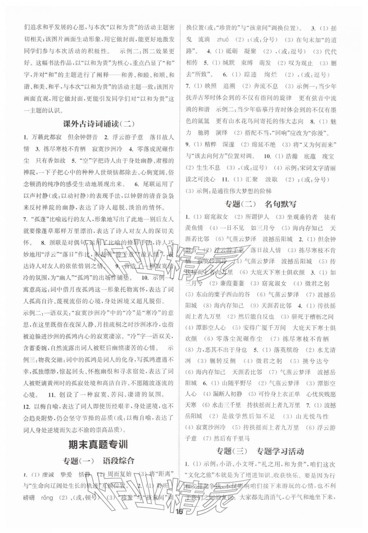 2026年通城学典课时作业本八年级语文下册人教版南通专版第16页